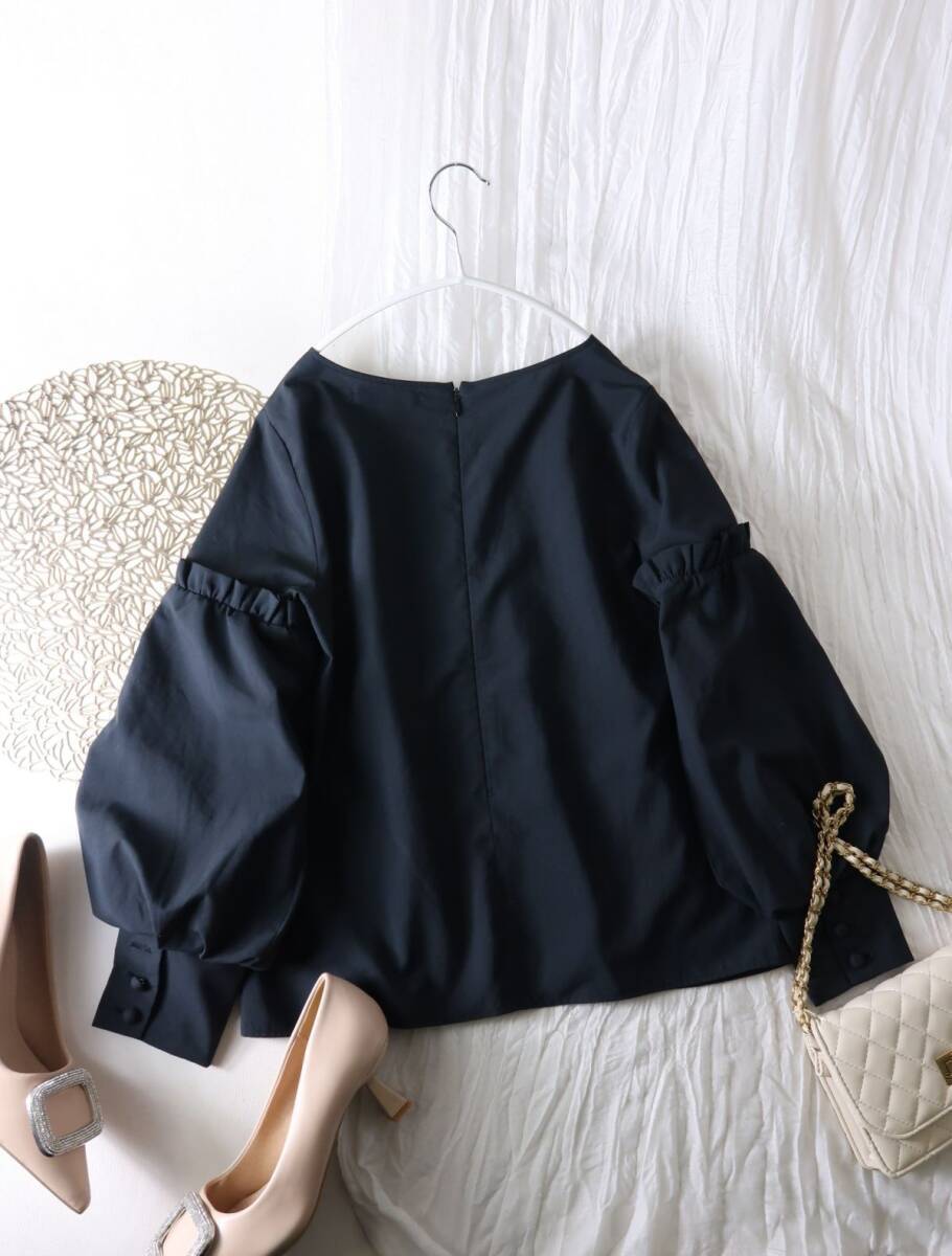 ボリュームのあるフリル付きのお袖で大人ガーリースタイルに◎