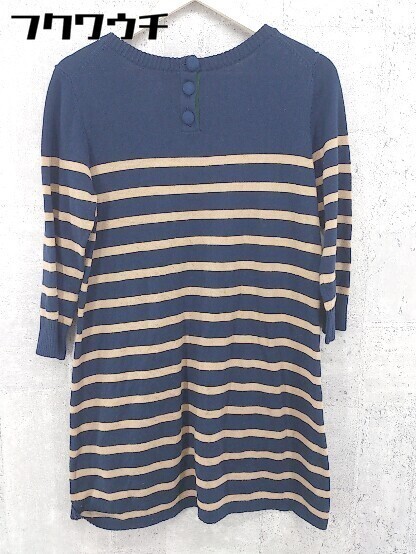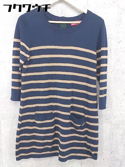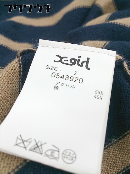 ◇ X-girl エックスガール ボーダー 長袖 ミニ ワンピース サイズ2 ネイビー ベージュ レディース