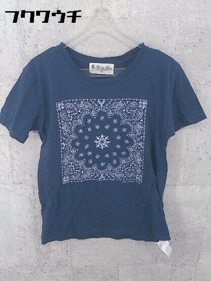 ◇ nano universe The 1st. Floor ザファーストフロアー プリント 半袖 Tシャツ カットソー サイズ38 ネイビー レディース