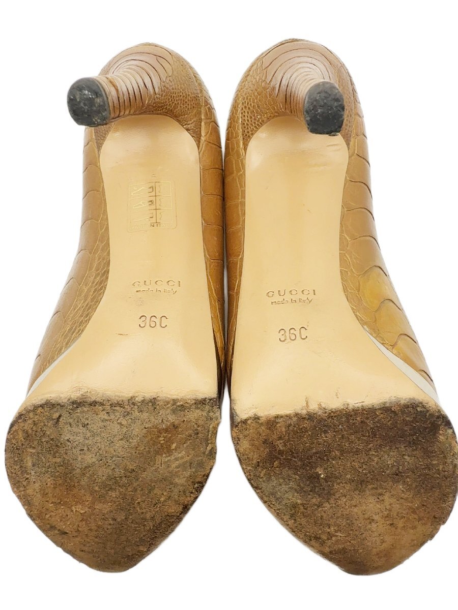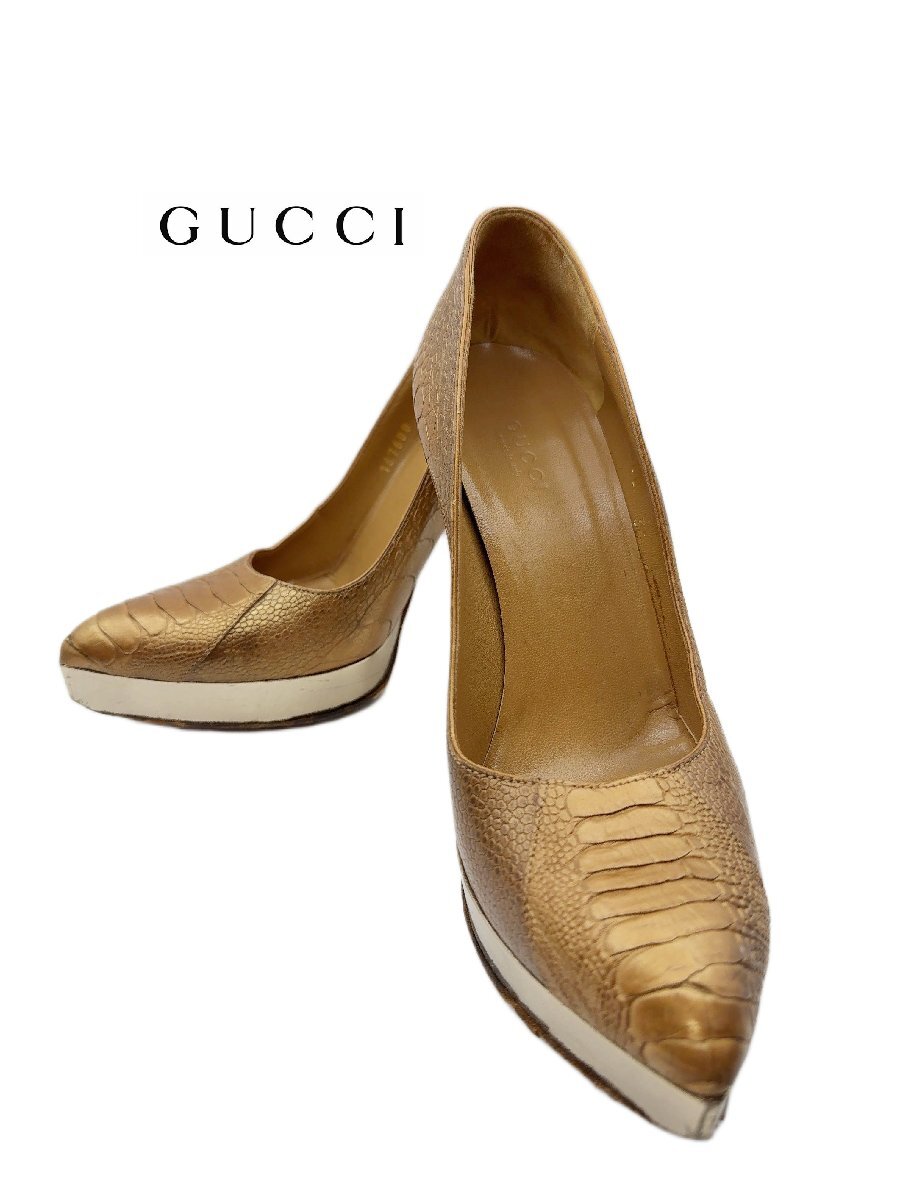 GUCCI グッチ ゴールド 型押しレザー ポインテッドトゥ ハイヒールパンプス ・商品の説明 |