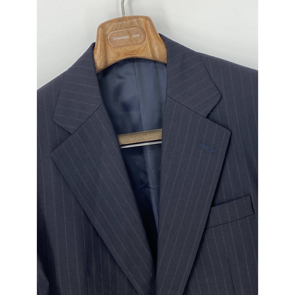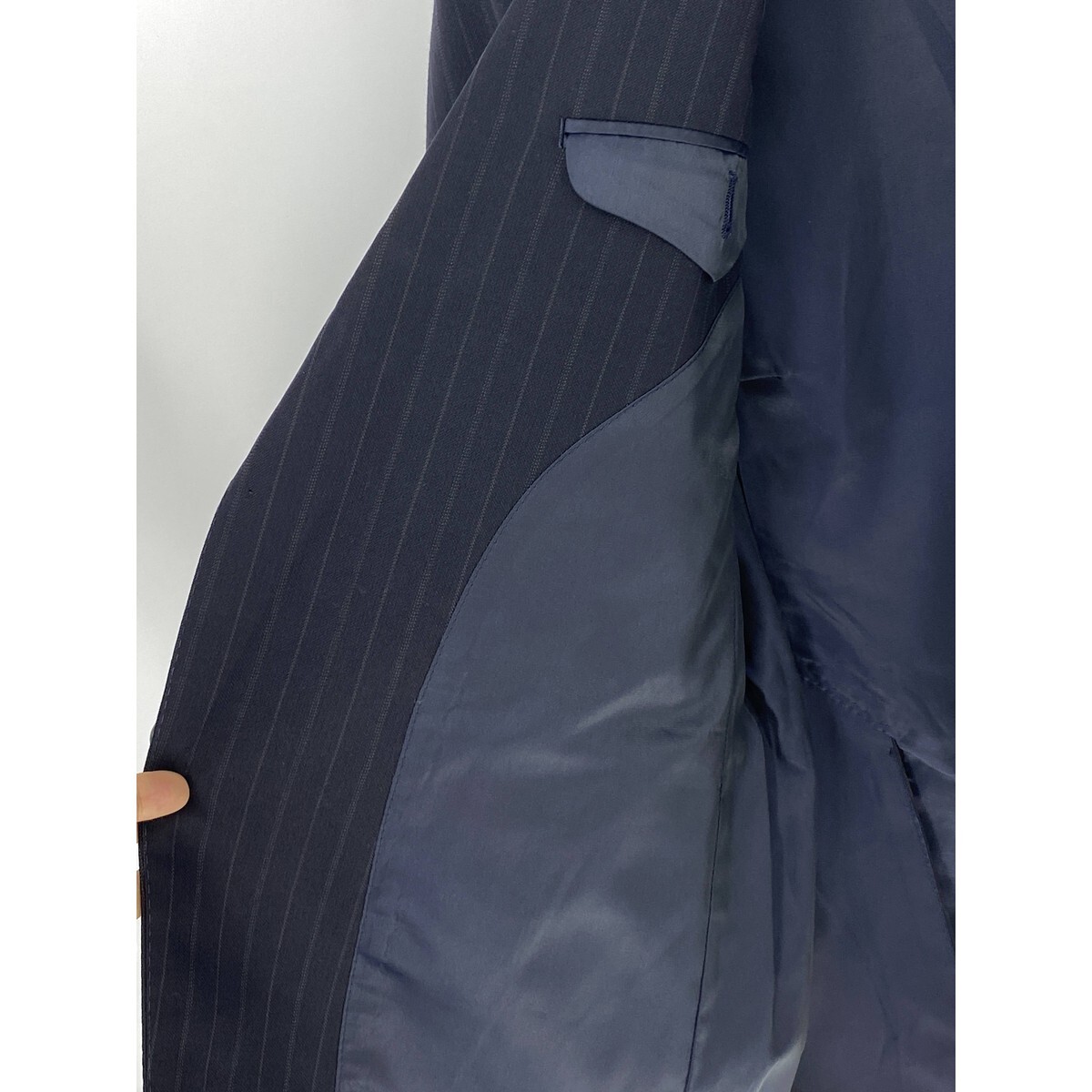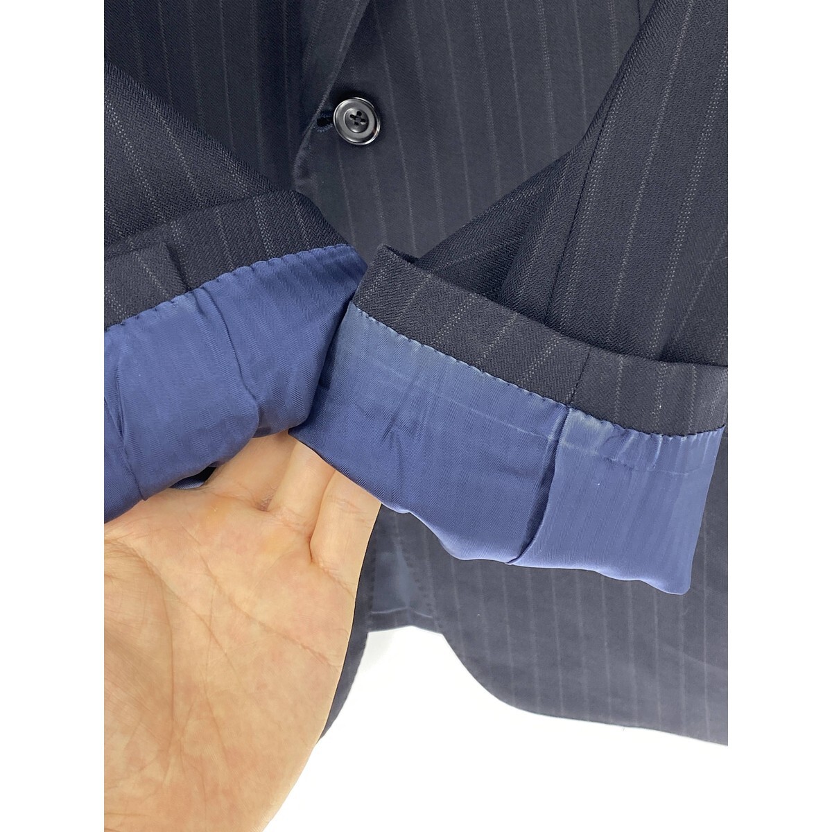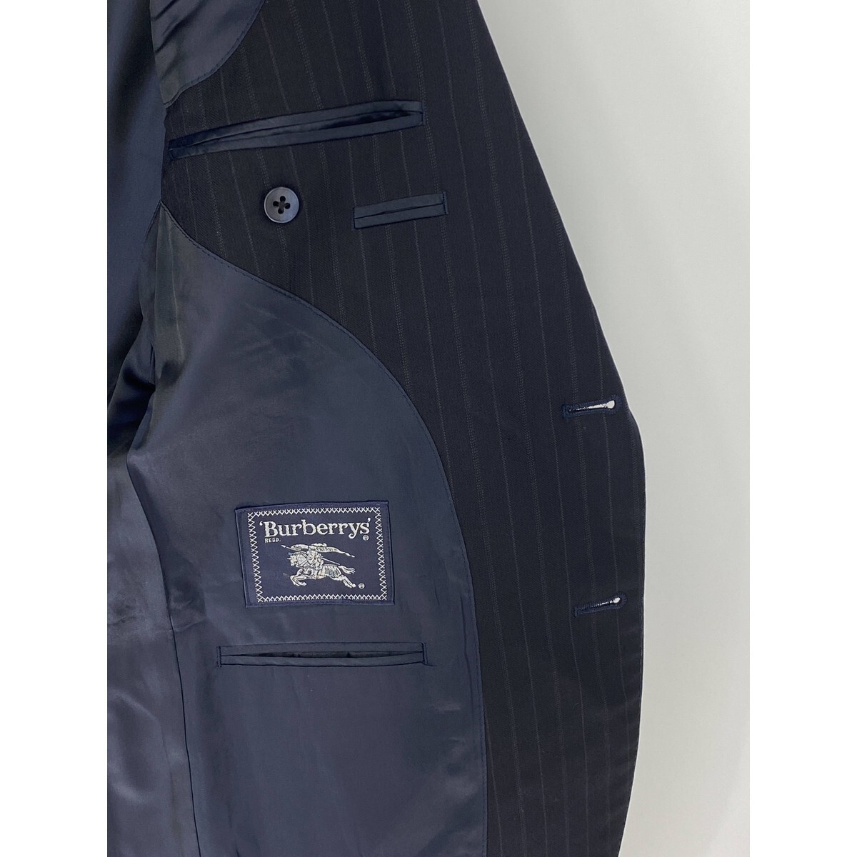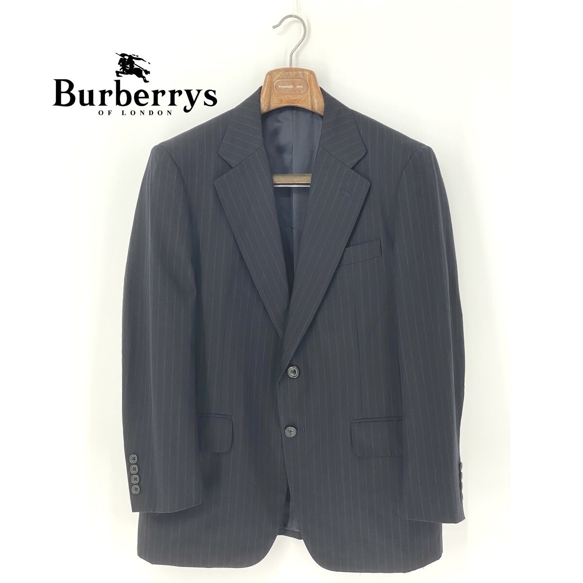 A8499/ビンテージ 90s 美品 秋冬 総裏 BURBERRY バーバリー ウール ストライプ テーラード シングル2Bジャケット AB4 165 S程 濃紺/メンズ