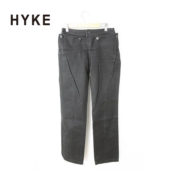 A4027/美品 春夏 GREEN グリーン コットン リネン デザイン 変形 無地 ストレート テーパード ワークパンツ 1 黒/日本製 レディース HYKE