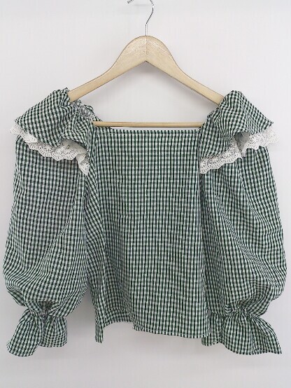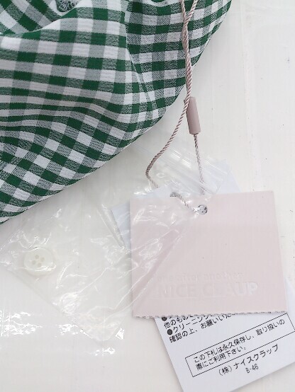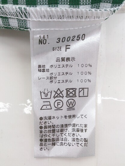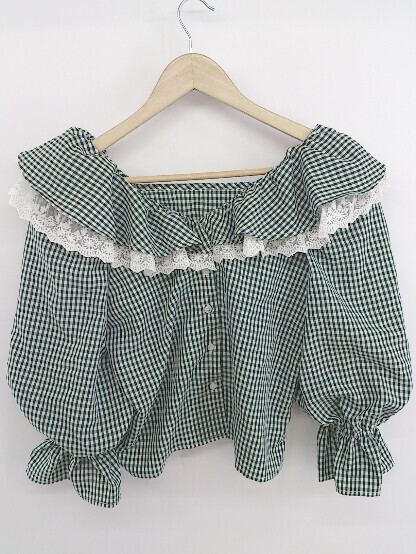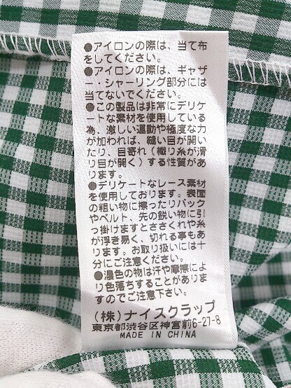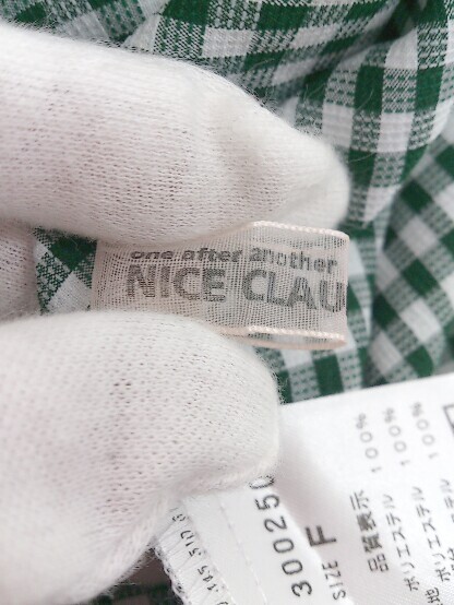 ◇ one after another NICE CLAUP チェック レース 五分袖 シャツ ブラウス サイズF グリーン ホワイト系 レディース P