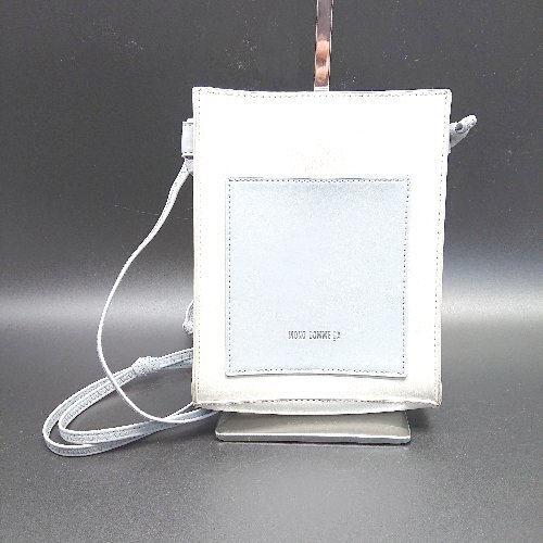 ◇ 美品 MONO COMME CA スクエア レザー ショルダー 調整可能 ショルダーバッグ アイスグレー レディース E