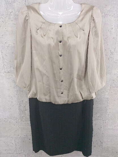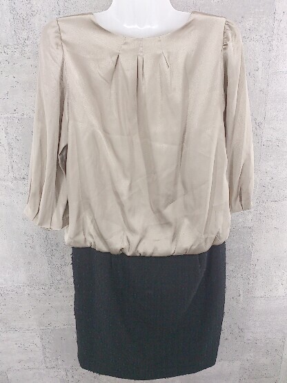 ◇ Ray BEAMS レイ ビームス 切替 長袖 膝丈 ワンピース サイズ1 ベージュ系 ブラック レディース