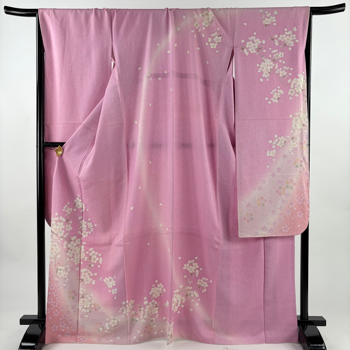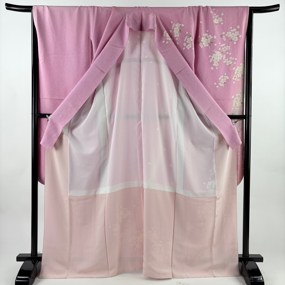 | 振袖 名品 桜 銀通し ぼかし ピンク 袷 身丈168 裄丈68.5 L 正絹 【中古】 |