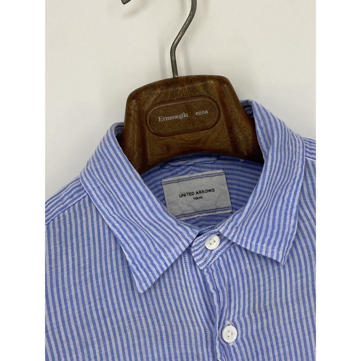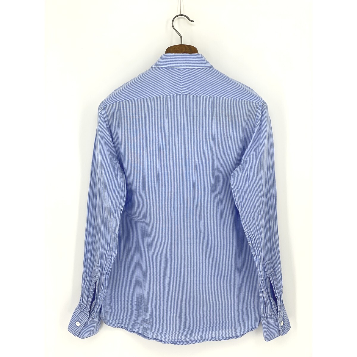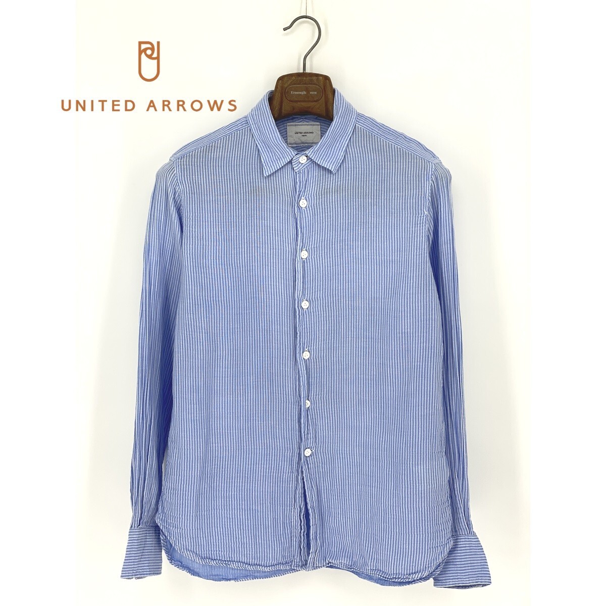 B0774/美品 UNITED ARROWS ユナイテッドアローズ TOKYO コットン ストライプ 長袖 カジュアル ドレス カッター Yシャツ M 水色 メンズ