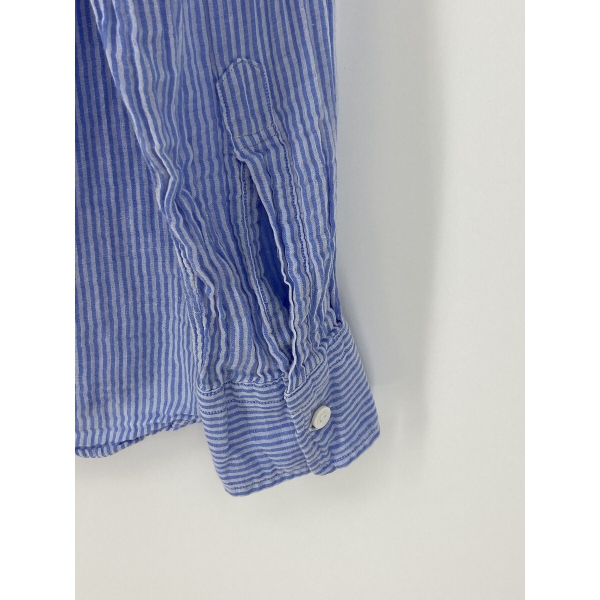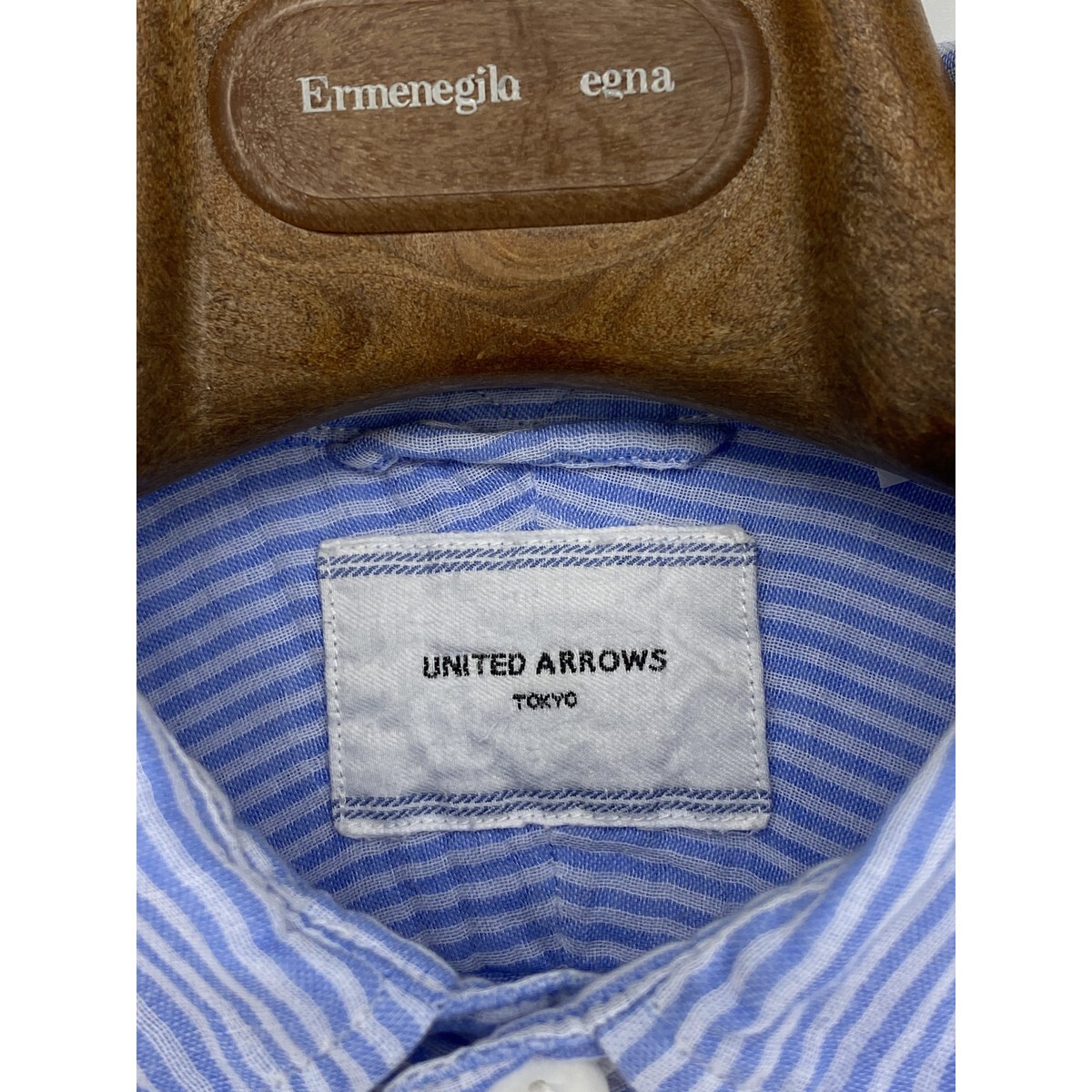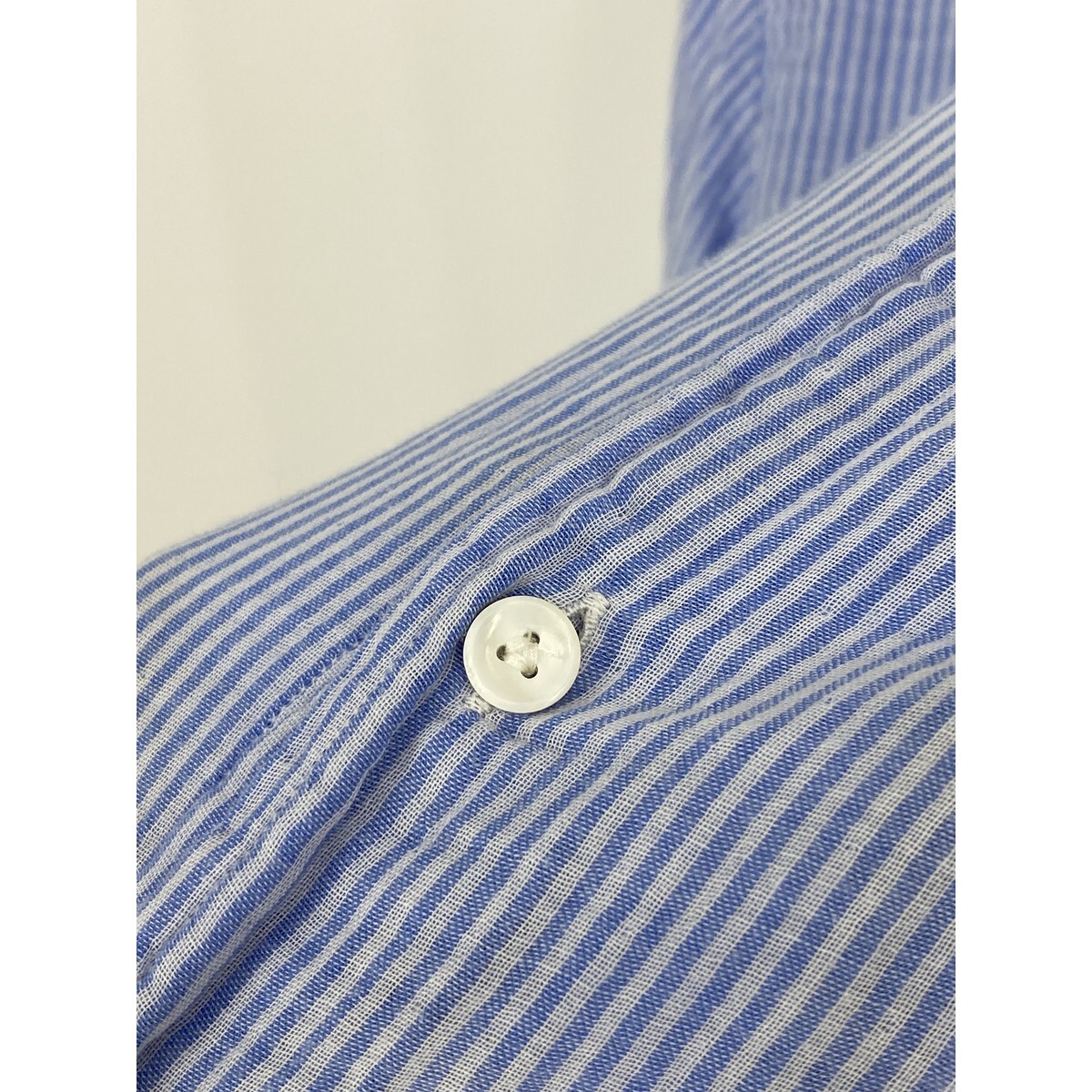 B0774/美品 UNITED ARROWS ユナイテッドアローズ TOKYO コットン ストライプ 長袖 カジュアル ドレス カッター Yシャツ M 水色 メンズ