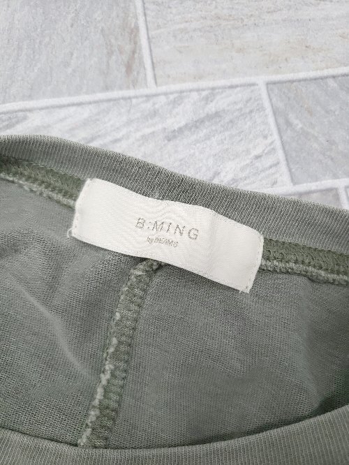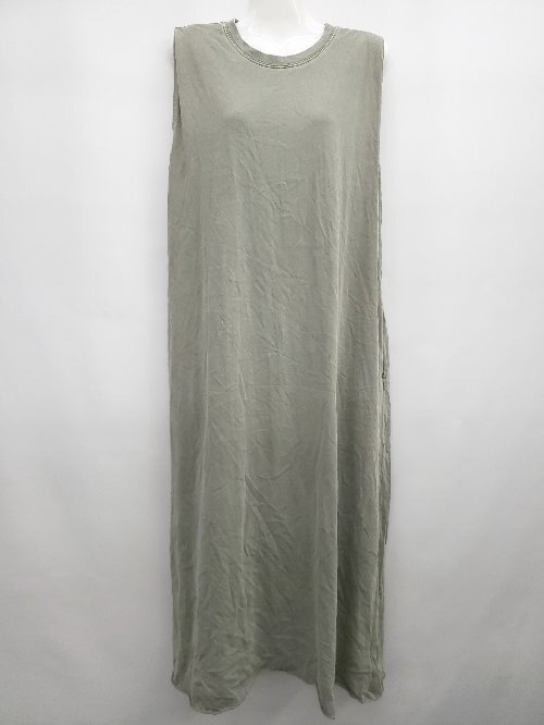 ◇ ⊂ B:MING by BEAMS ユーズド加工 カットソー ノースリーブ ロング丈 ワンピース サイズS カーキ レディース P