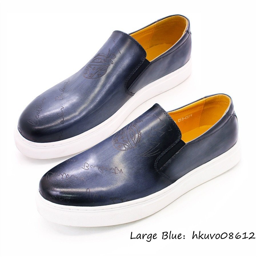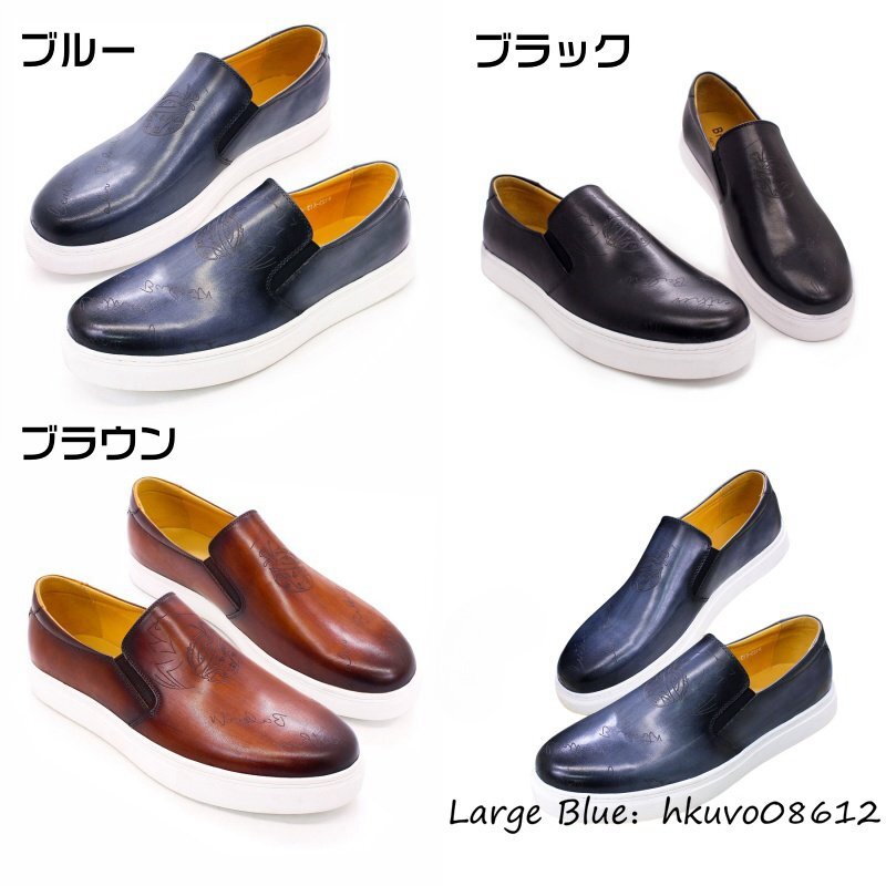 定価9万◇スリッポン ローファー 本革 ドライビングシューズ 最高級 牛革 スニーカー 紳士靴 ビジネスシューズ 革靴 軽量 ブルー 25.5cm