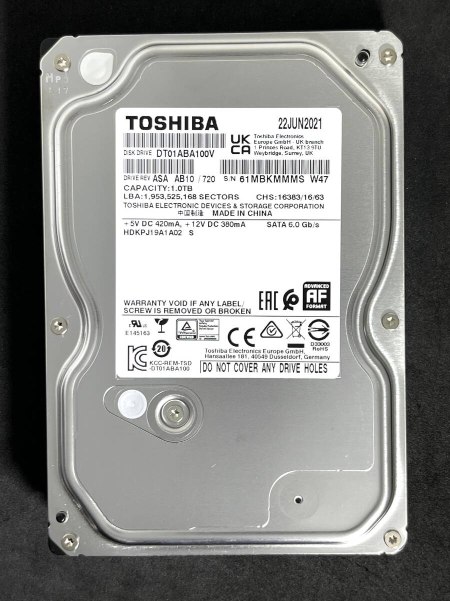 ★ 1TB ★ DT01ABA100V / TOSHIBA 2021年製 【使用時間:18231h】良品 3.5インチ内蔵HDD SATA AVコマンド対応 1000GB [管■5BMM]