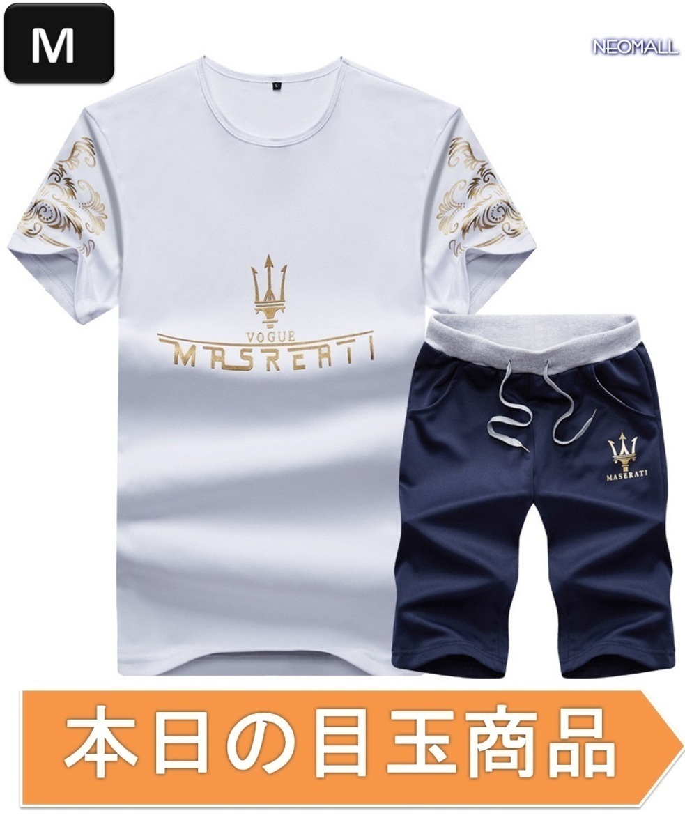 ☆今日の目玉商品☆ジャージ 上下 セット 半袖 部屋着 ルームウェア スポーツウェア セットアップ ホワイト×ネイビー Mサイズ 【355】
