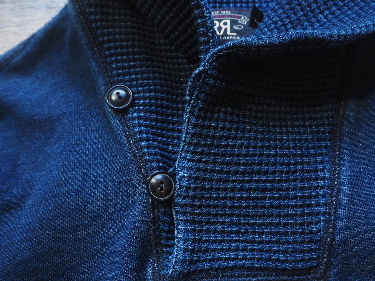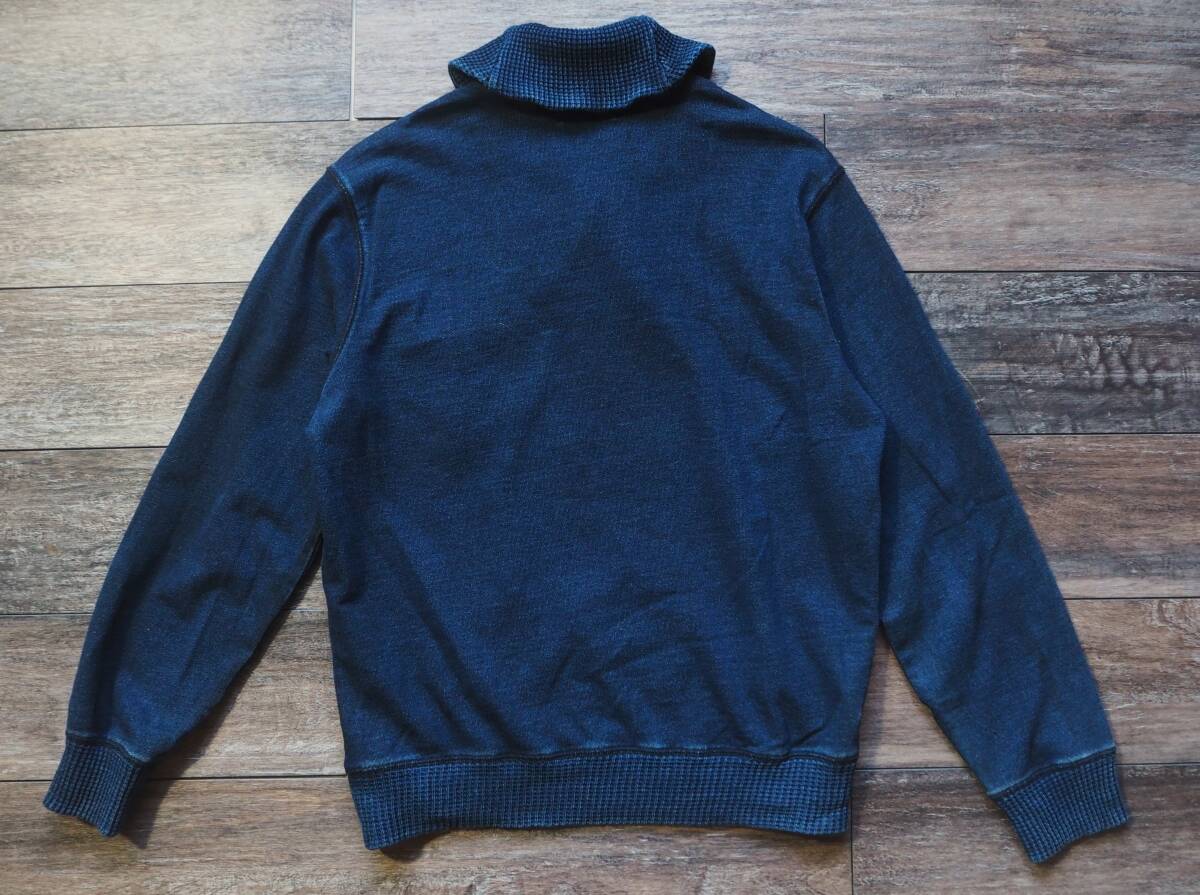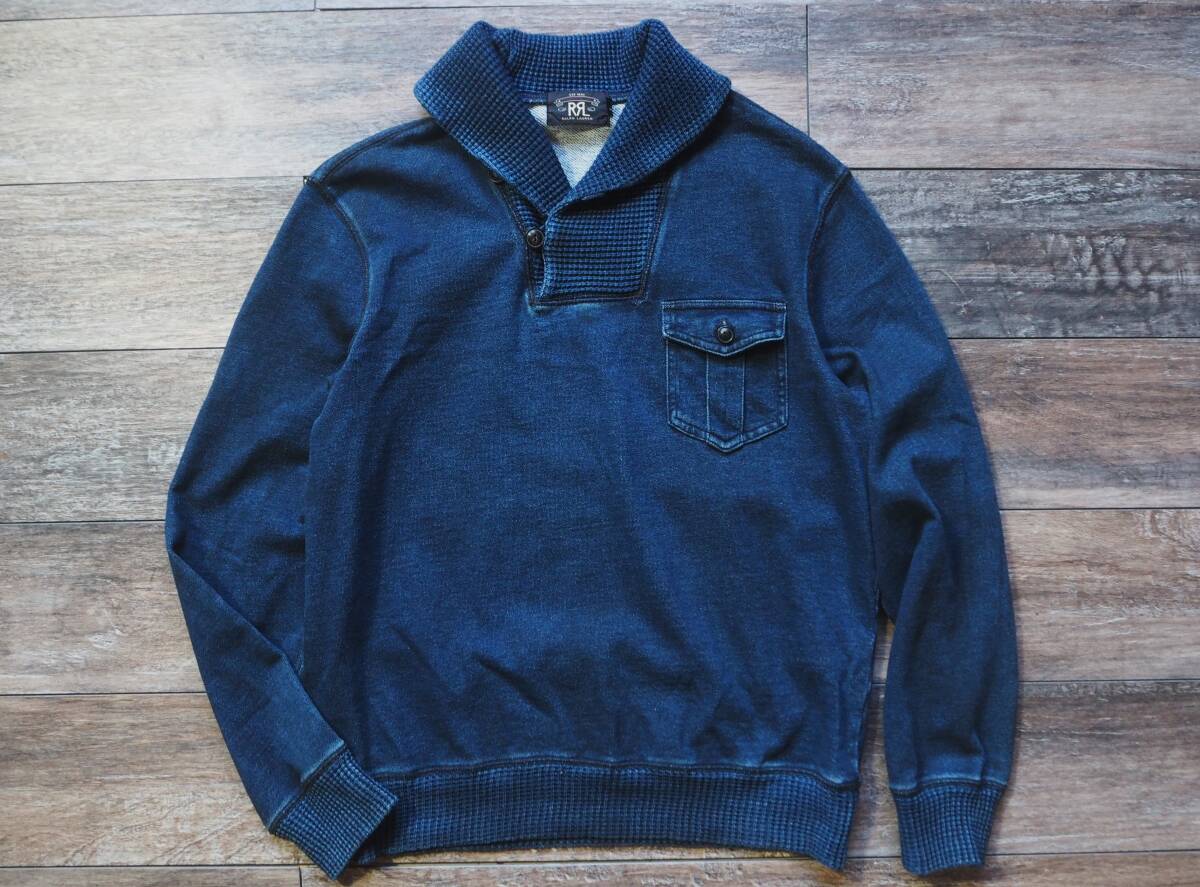 こちらはRRLダブルアールエル インディゴダイ ショールカラースウェットニットです。 先染めインディゴダイされたフレンチテリー、高級感備えた端部のニット、ショール&アームに使用されるフラットシーム等、スウェット素材を超えたクオリティが特徴的です。 フィニッシュはNAVALテイストにウオッシュが施されており計算された濃淡が魅力的です。 武骨な中にも品を兼ね備えた風格漂う一着です。 RRLダブルアールエル インディゴダイ ショールカラースウェットニット /ユニオンチケット付 size M 素材 100% COTTON ラルフレーレン正規品 MADE IN CHINA 実寸 身幅 57cm 肩幅 49cm 着丈 70cm 袖丈 64cm コンディション 丁寧な扱いの品で当初のウオッシュが綺麗にキープされています。 目立つ汚れやダメージ等ありません。 生地はやや厚手で安心感備えたクオリティです。 宜しくお願い致します。 | ||||