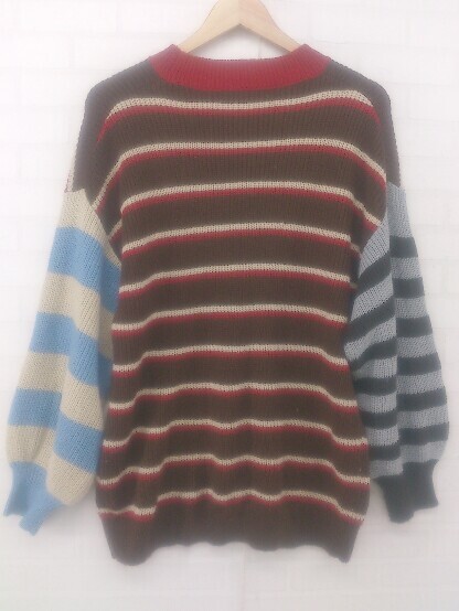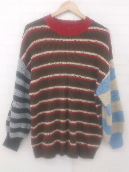 ◇ KBF URBAN RESEARCH ボーダー ゆったり 長袖 ニット セーター サイズONE ブラウン レッド系 マルチ レディース E
