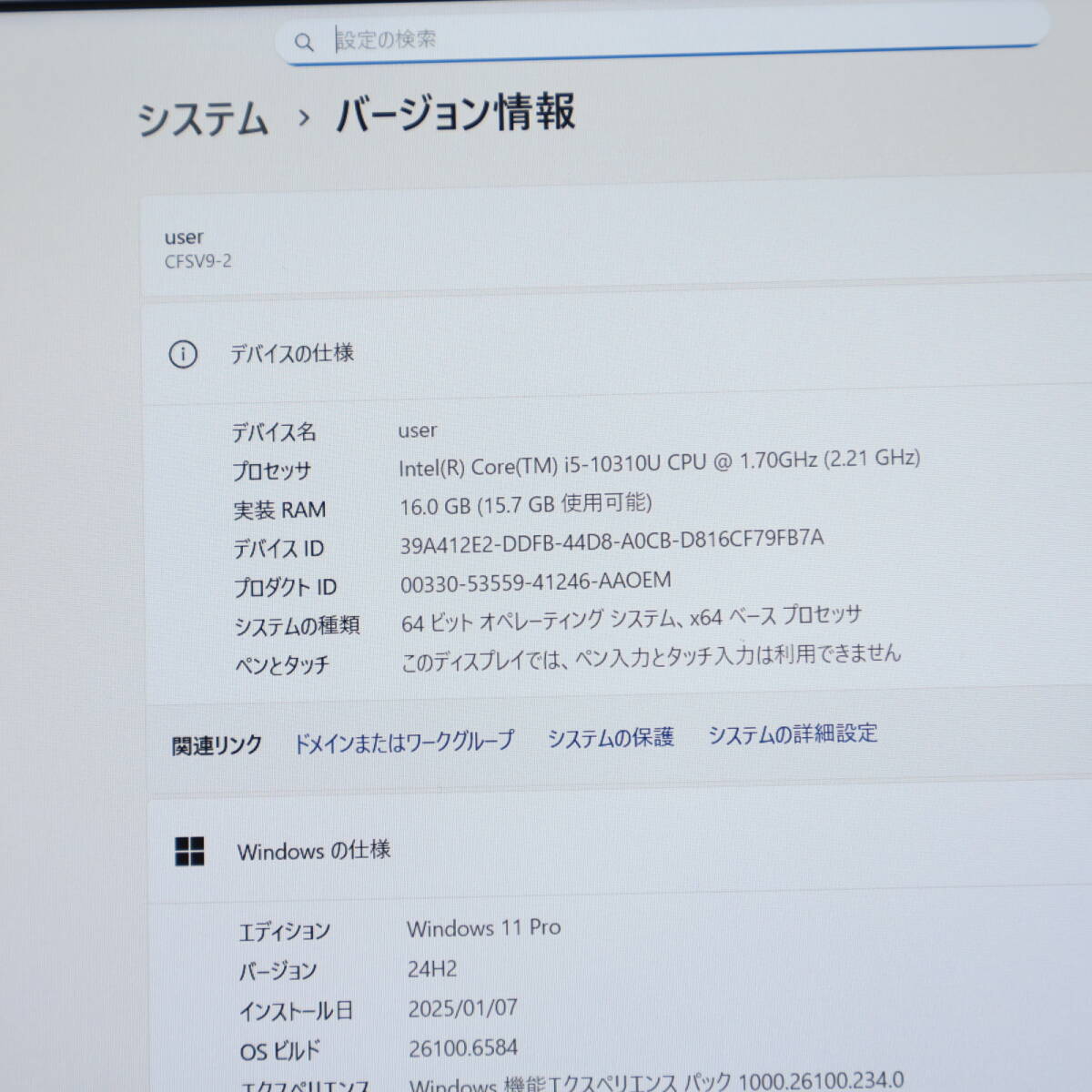 ★美品 高性能10世代4コアi5!M.2 NVMeSSD256GB メモリ16GB★CF-SV9 Core i5-10310U Webカメラ TypeC Win11 MS Office2019 H&B★P93782