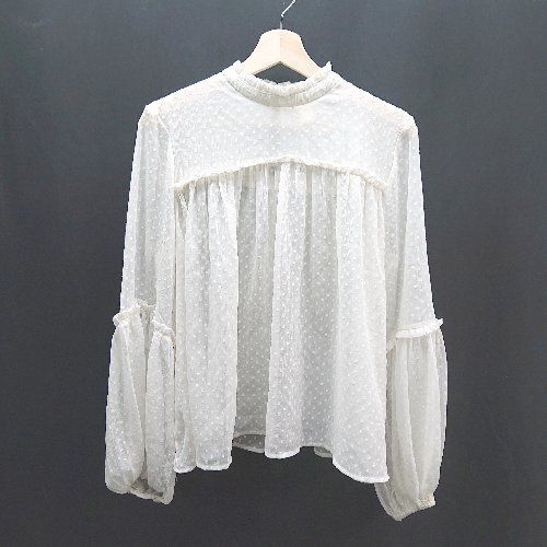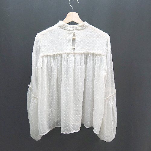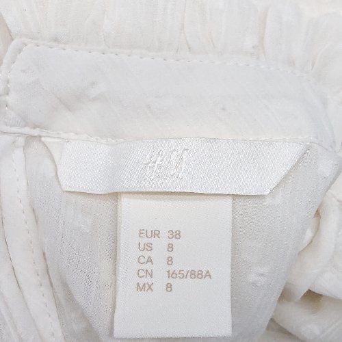 ◇ H&M ドット柄 シアー素材 フリル ガーリー 上品 かわいい 透け感 長袖 ブラウス サイズ8 ホワイト レディース E
