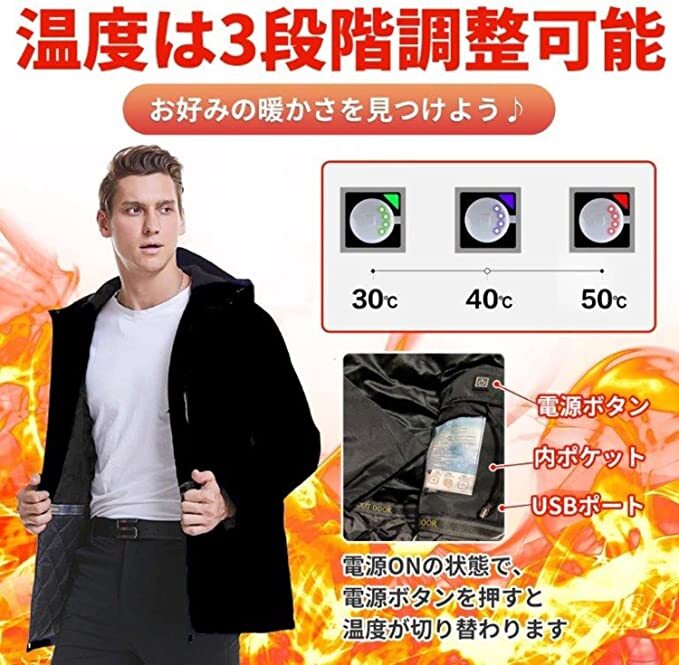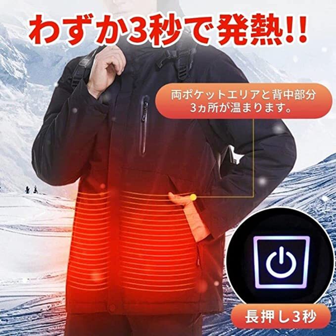 新品 3XL 電熱ジャケット メンズ ジャケット コート 電熱ヒーター 電熱ウェア 防寒服 撥水加工 USB給電式 大きいサイズ