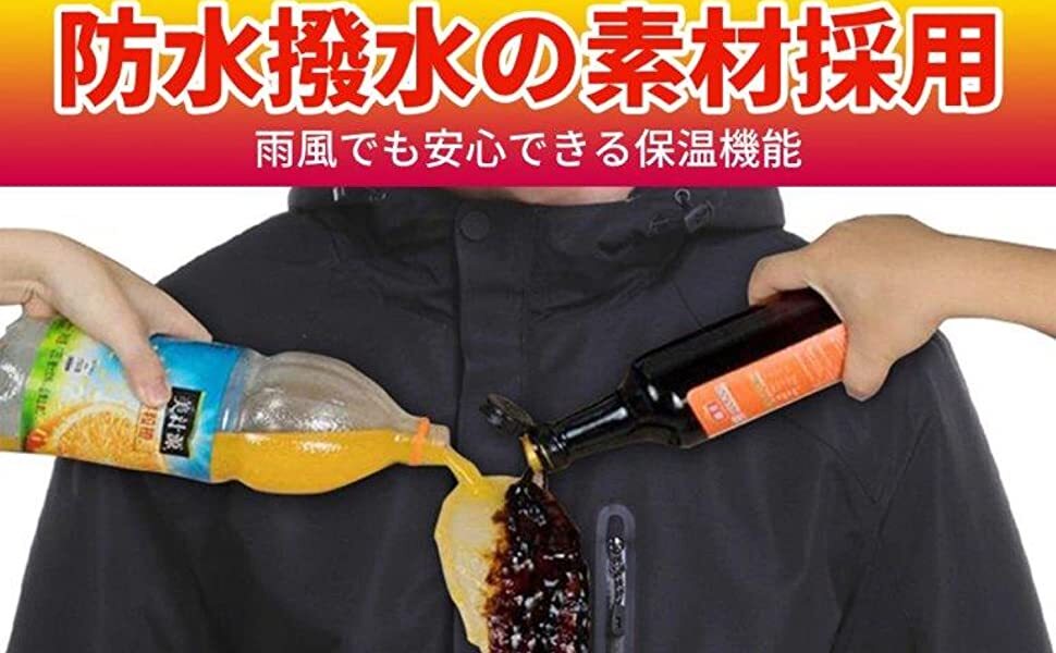 画像で伝わりずらいですが裏地ベルベット起毛で中綿入りジャケットなので電熱ヒーターをONしなくてもかなり暖かく、この1枚で今冬は過ごせます。また、今まで無かったこの電熱式タイプの撥水ジャケットは、通勤や寒い冬のお出かけに最適なジャケットです。6サイズ展開と幅広くサイズを揃えました。男女兼用ジャケットなので何方にでも幅広く着用出来ます。