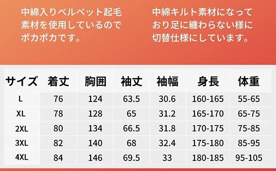 着丈82、胸囲140、袖丈68、袖幅32.4、身長175-180