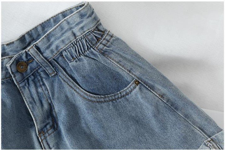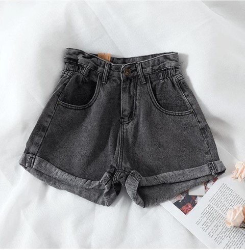 ・ウエストの位置を高く見せスタイルアップできるハイウエスト。可愛いロールアップデザインです。