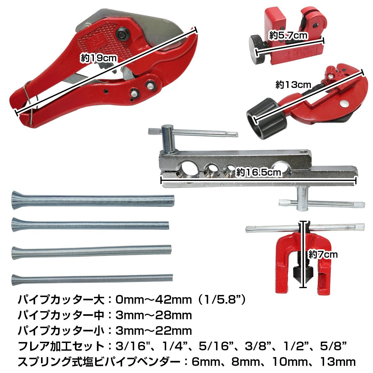 商 品 説 明塩ビ管やパイプの切断・曲げ・フレア加工をするツールセットです。