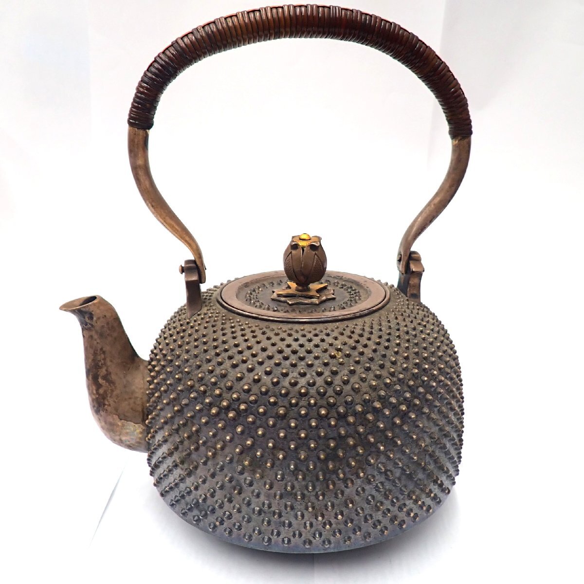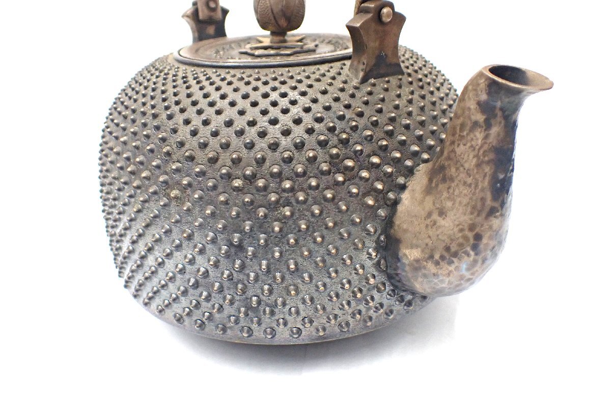 純銀製湯沸、長期保管品のため全体的に変色しています。