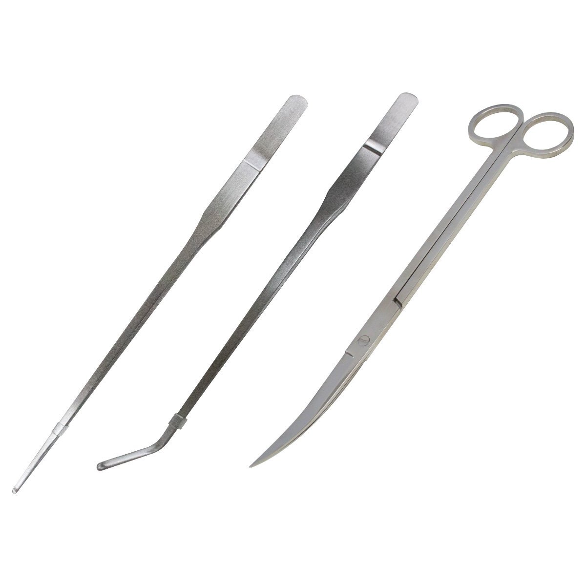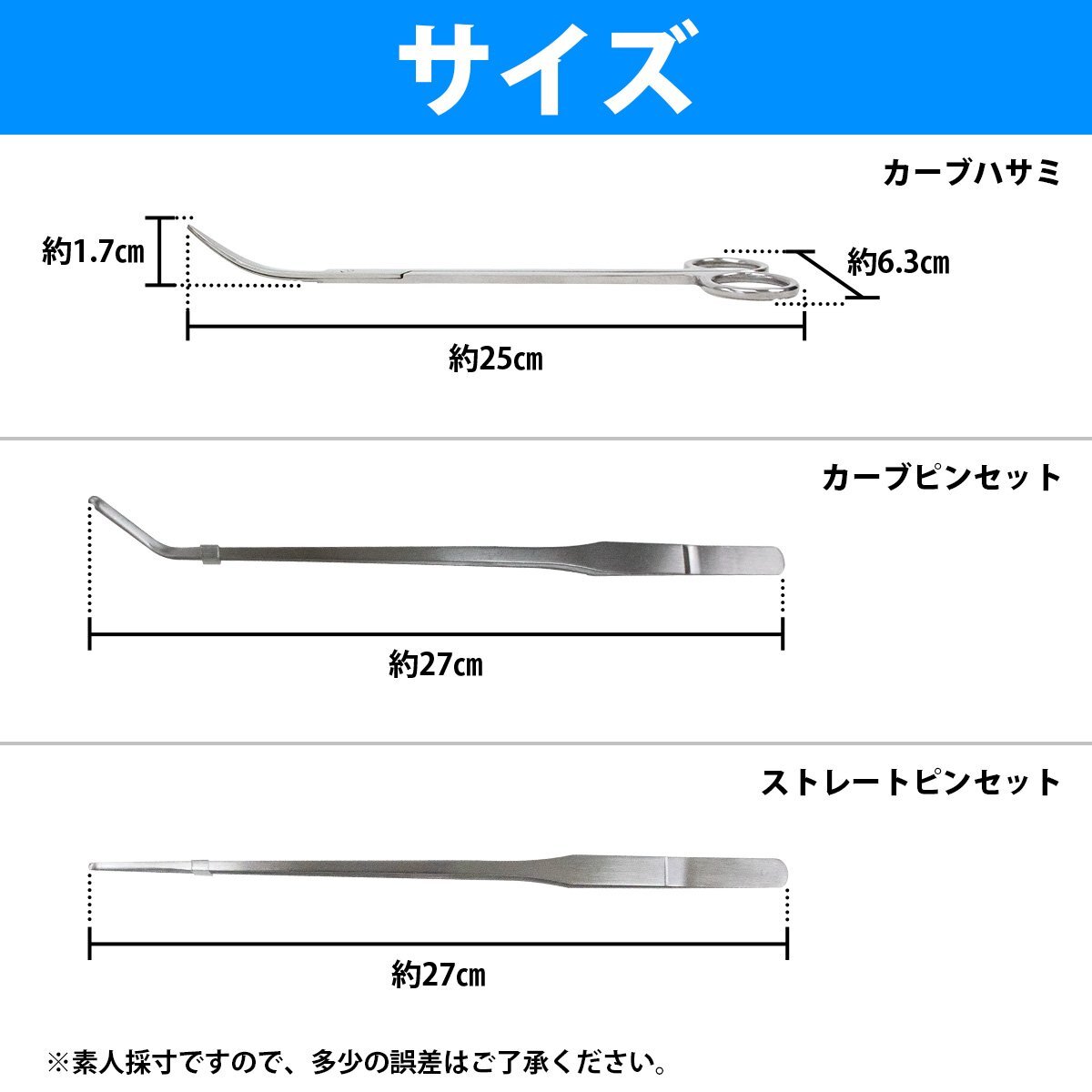 3点セット 『27cm ハサミ & 27cm ピンセット2種類 ストレート カーブ型』 水槽 水草トリミングキット