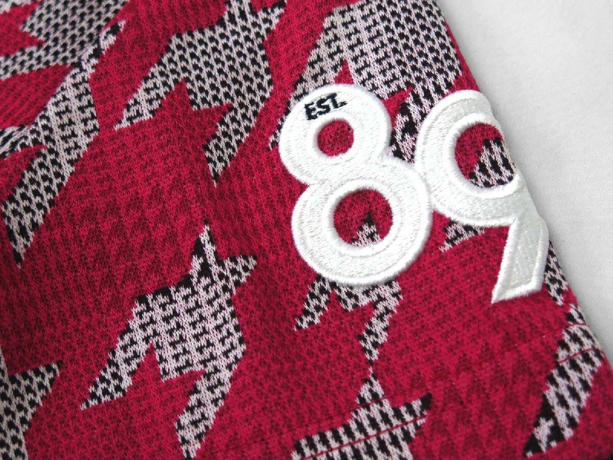 伝統的な2パターンを組み合わせてデザインした半袖ポロシャツ。