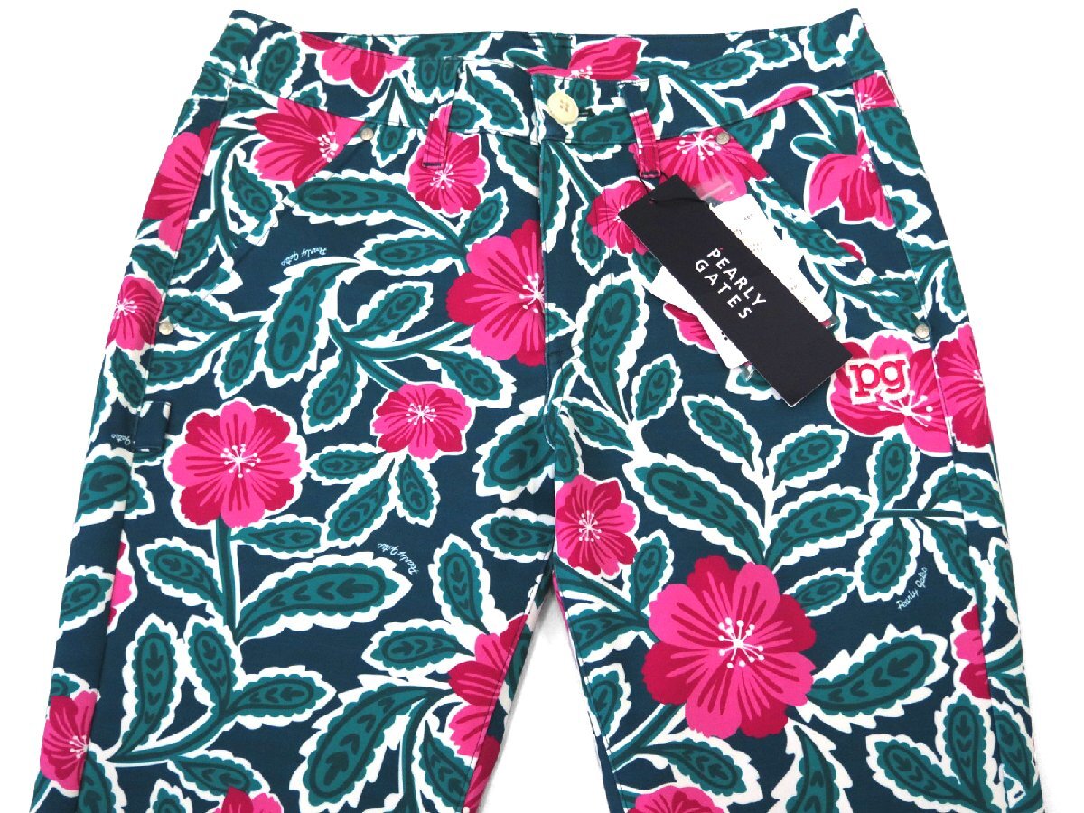 商品名● PEARLY GATES パーリーゲイツ ●新品 【ダンボールニット】 ペイズリー花柄プリント レディースパンツ グリーン/S 定価31900円