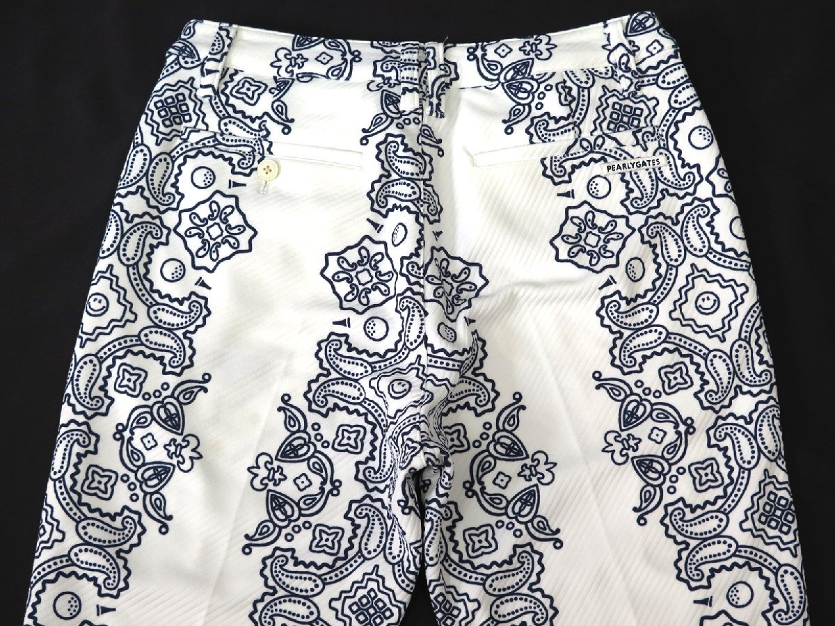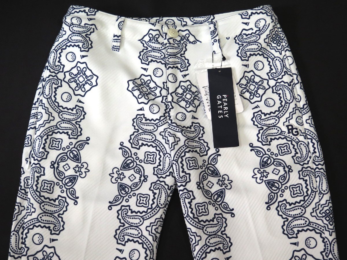 G248● PEARLY GATES パーリーゲイツ ●新品 ブリスターカルゼ ペイズリープリント レディースパンツ ホワイト/S 定価35200円