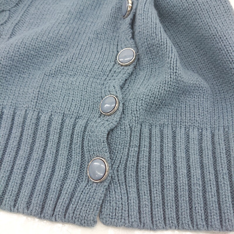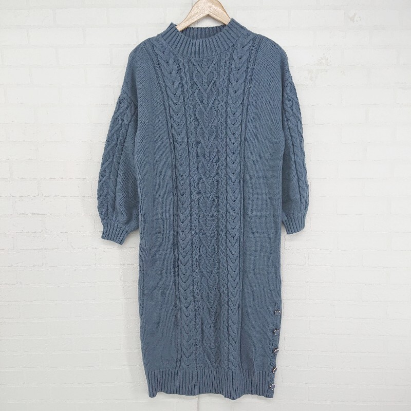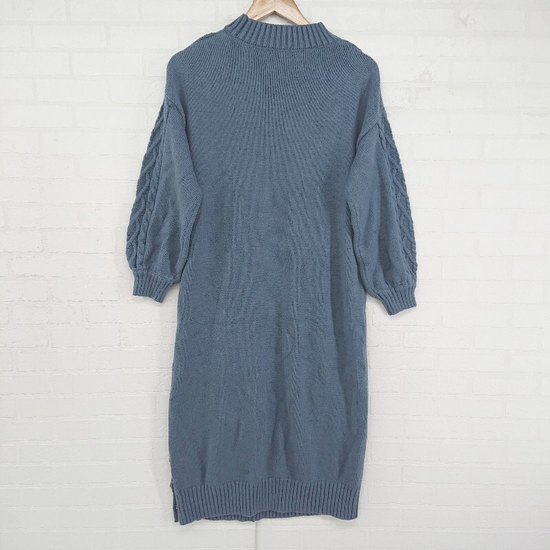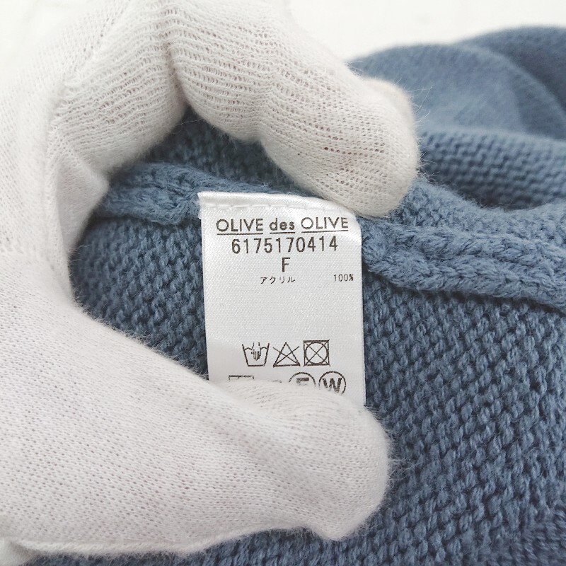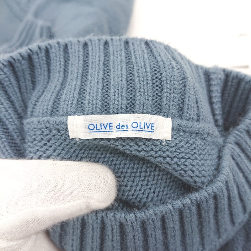 ◇ OLIVE des OLIVE オリーブ デ オリーブ ナチュラル ケーブル編み 長袖 膝丈 ワンピース サイズF ブルー系 レディース P