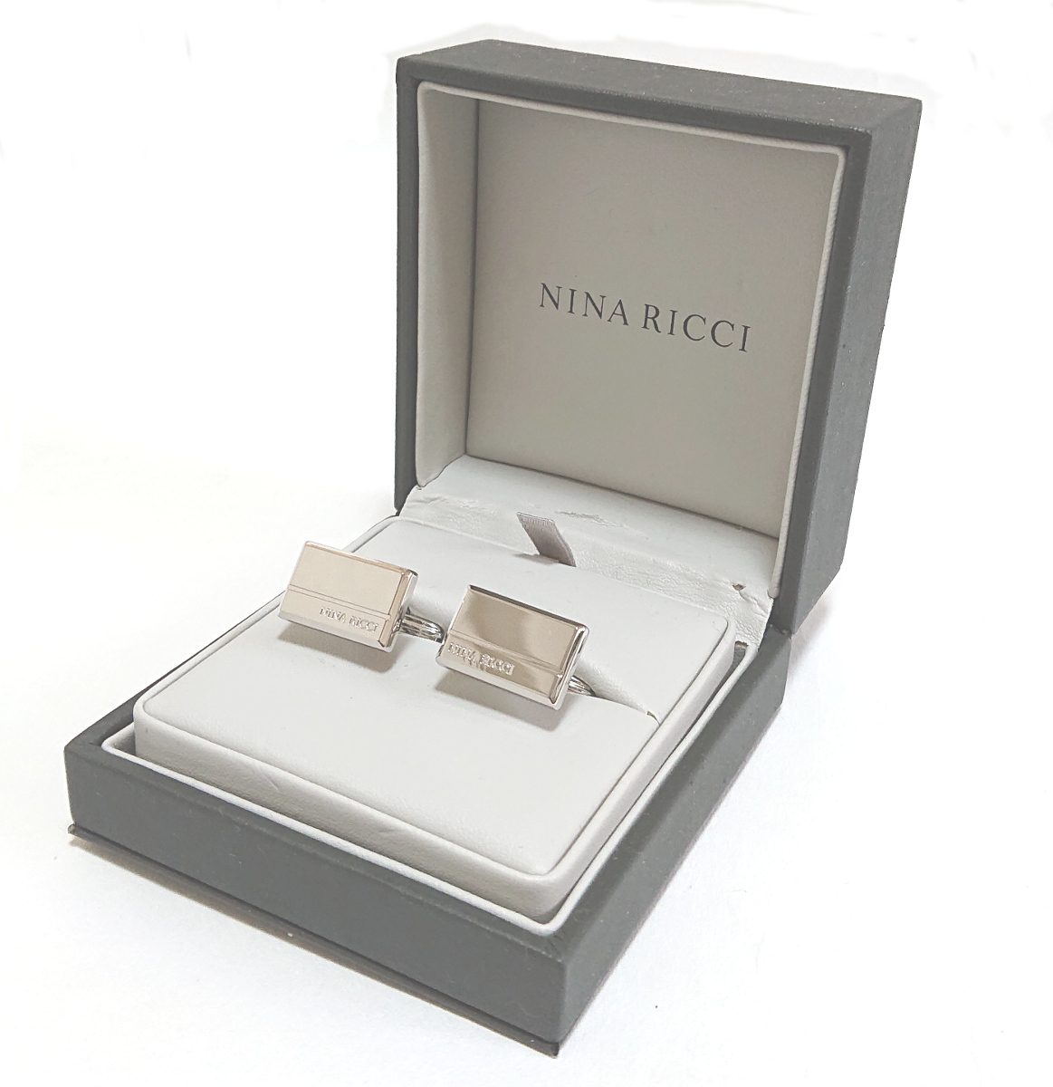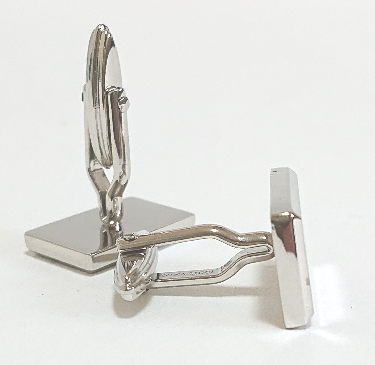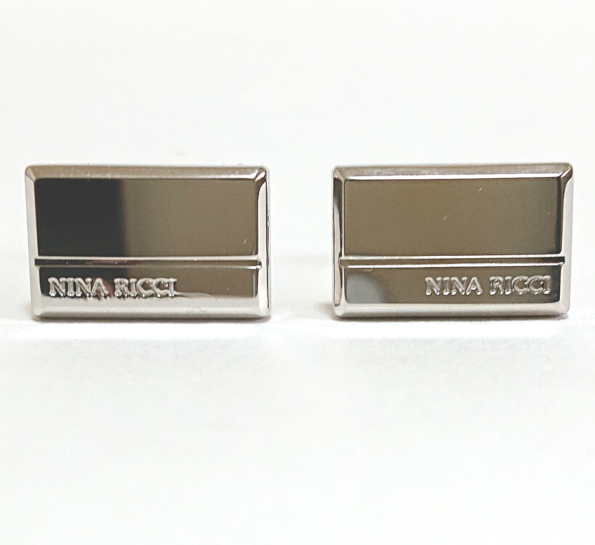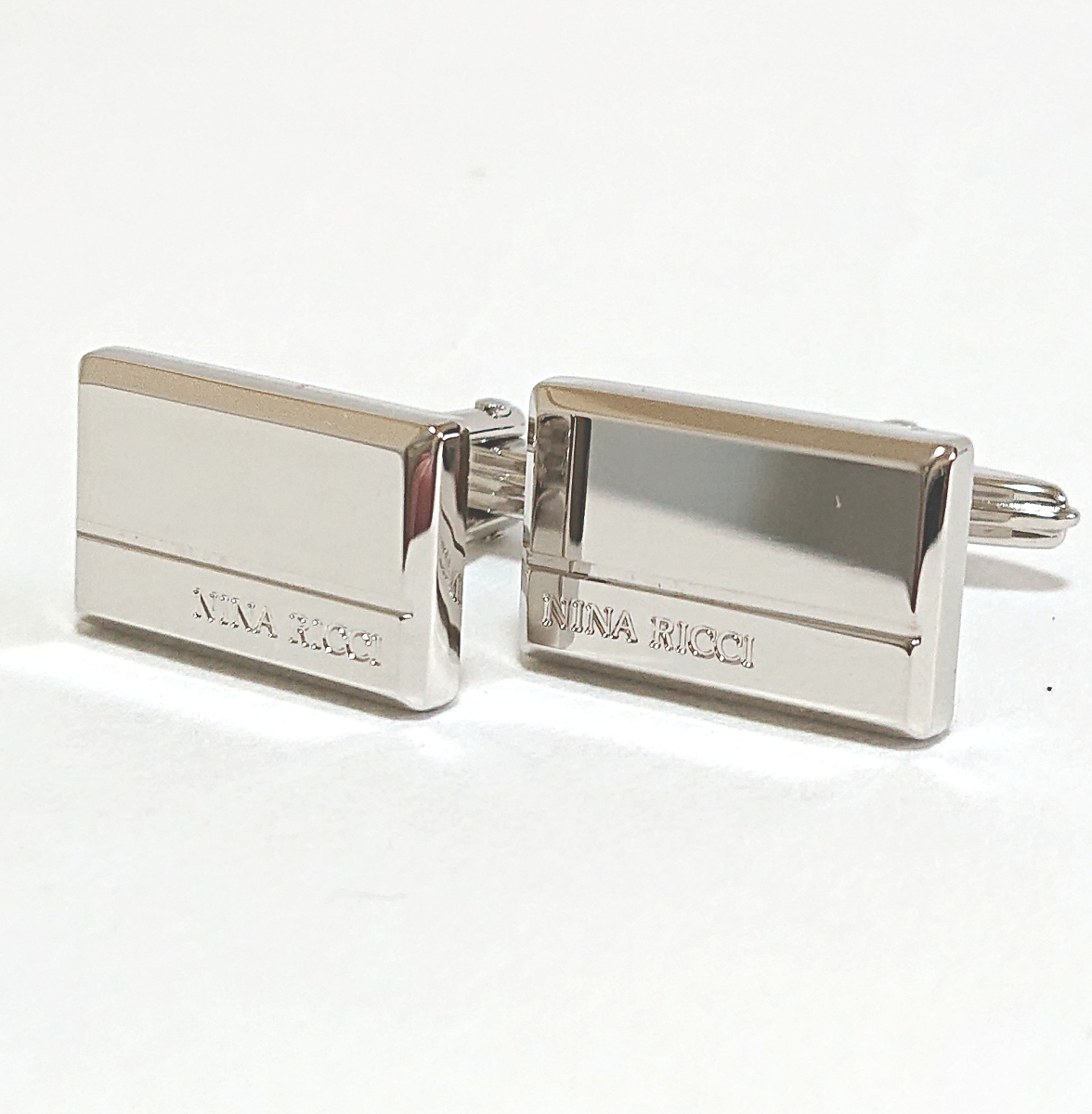 | 【カラー】シルバー 【サイズ】2㎝×1.2㎝ 【素材】真鍮 【付属品】純正のお箱(傷があります) 【デザイン】NINA RICCIの刻印と、ラインのデザインです。 シンプルかつスタイリッシュなカフスです。 裏側にも刻印が刻まれております。 どんなシャツやスーツともコーディネイトし易いデザインです。 デザイン違いや、ネクタイピン等も出品しております。 | |
