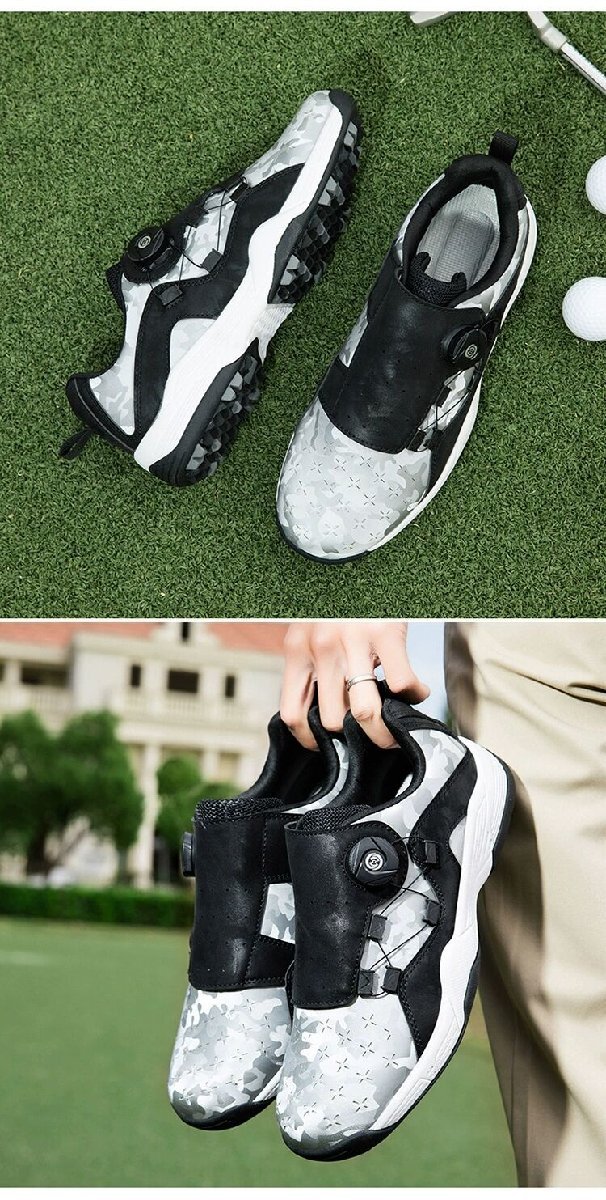 GRF-1079黒/灰45 男女兼用 絶賛 防滑 耐磨 撥水 通気性 強い弾力性 メンズ ゴルフシューズ 運動靴 スニーカー フィット感 35-45選