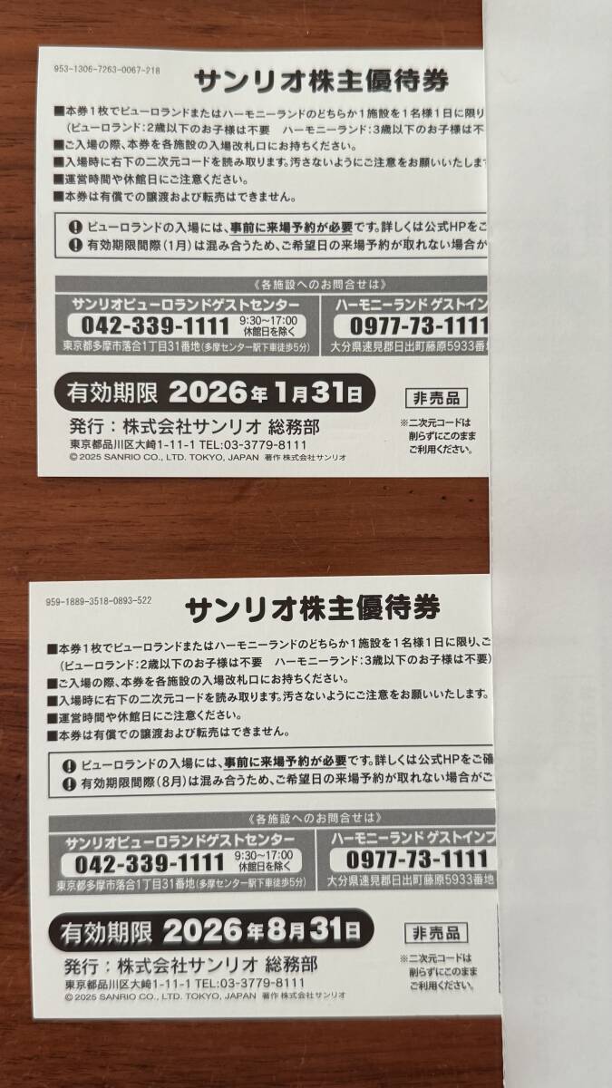 サンリオピューロランド、ハーモニーランド利用券 2枚