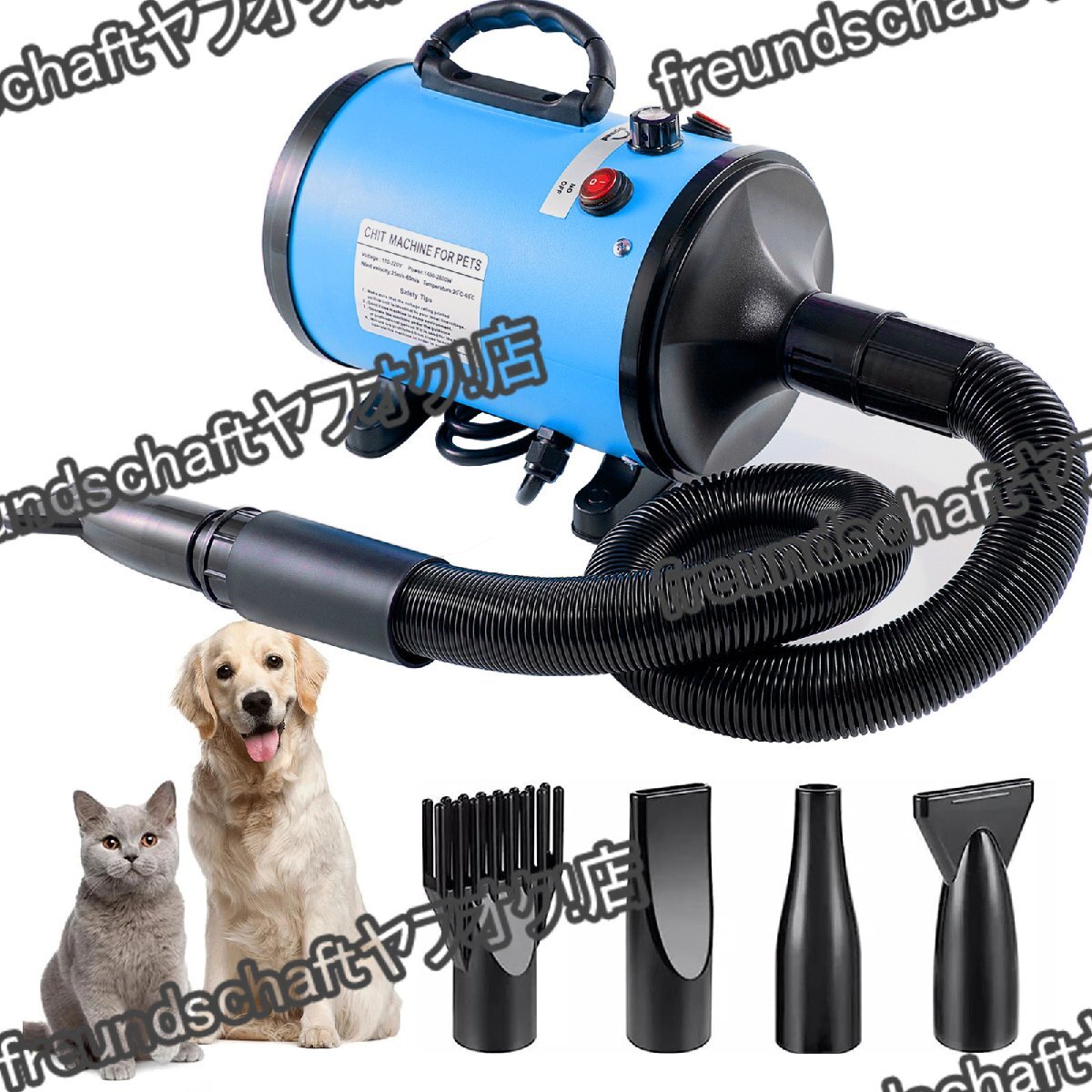 ペットドライヤー 犬用ドライヤー 猫 犬 ドライヤー 大風量 犬用乾燥機 無段階風速制御 -℃温度可調整 4種ノズル付き ブルー zchw0282.2