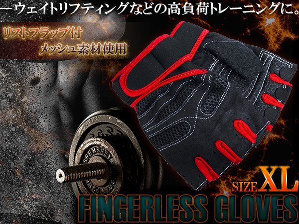 [新品即納]フィンガーレスグローブ 指なし トレーニンググローブ XLサイズ レッド 赤 ジム ウェイトトレーニング 指だし 手袋