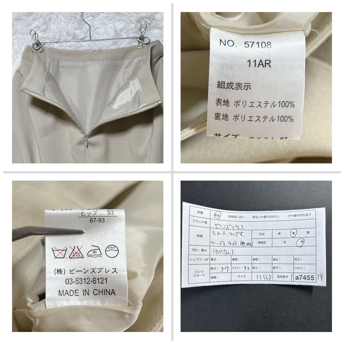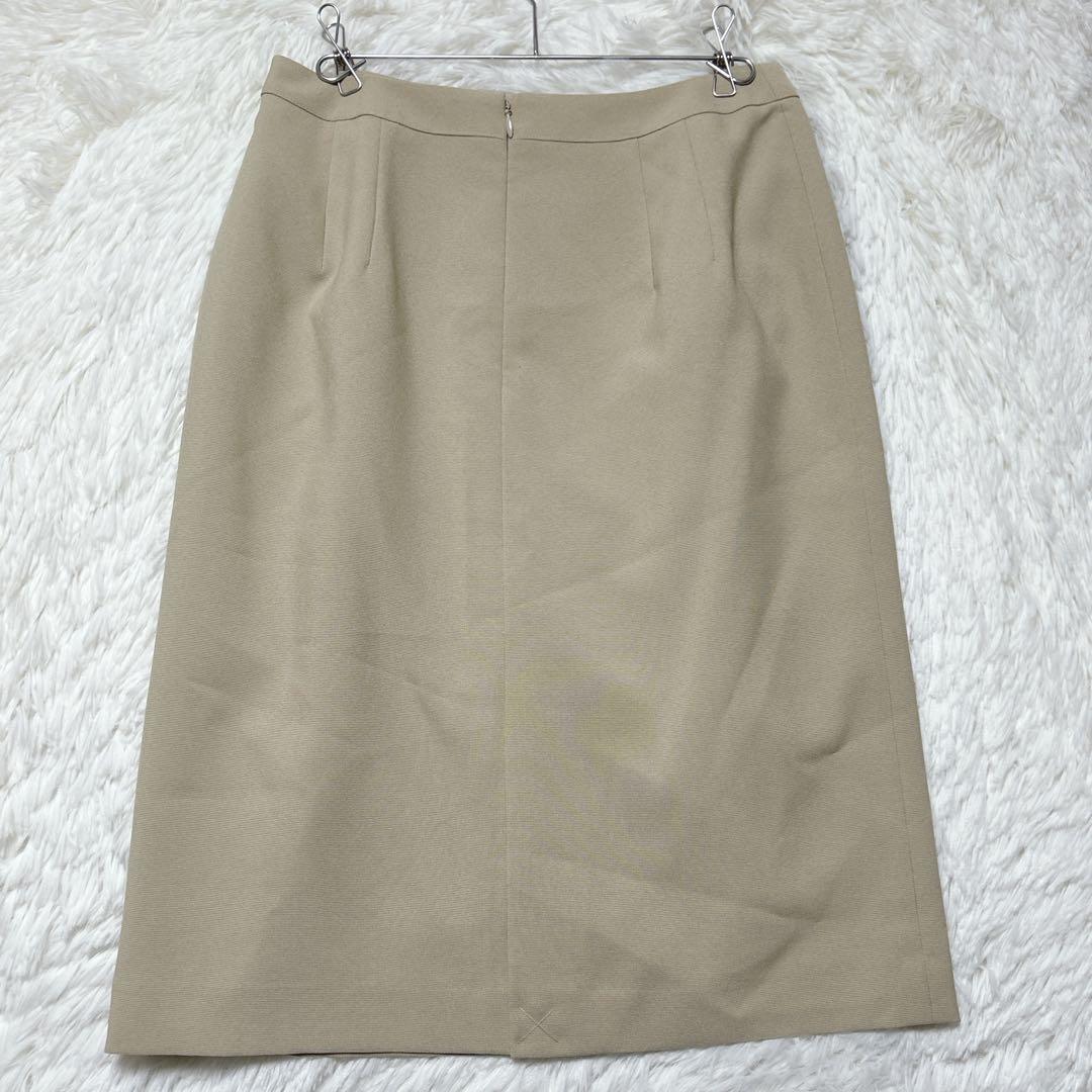 未使用 ビーンズプレス スカート ひざ丈 ベージュ タイト 無地 11 オフィス 15C669
