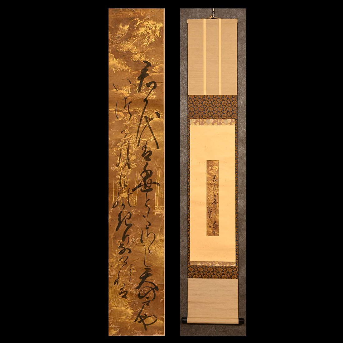【永】a308【兵庫県の図書館や博物館の館長を歴任された歴史研究家遺族委託品】掛軸 金泥装飾古筆和歌幅 伝来品 名品 日本画