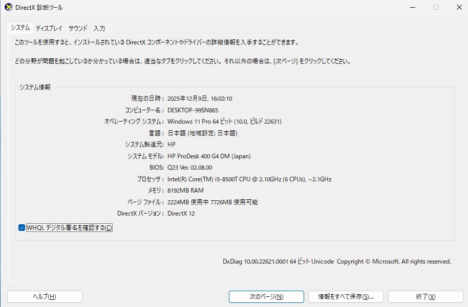 | OS | Windows 11 Pro (ライセンス認証済) |