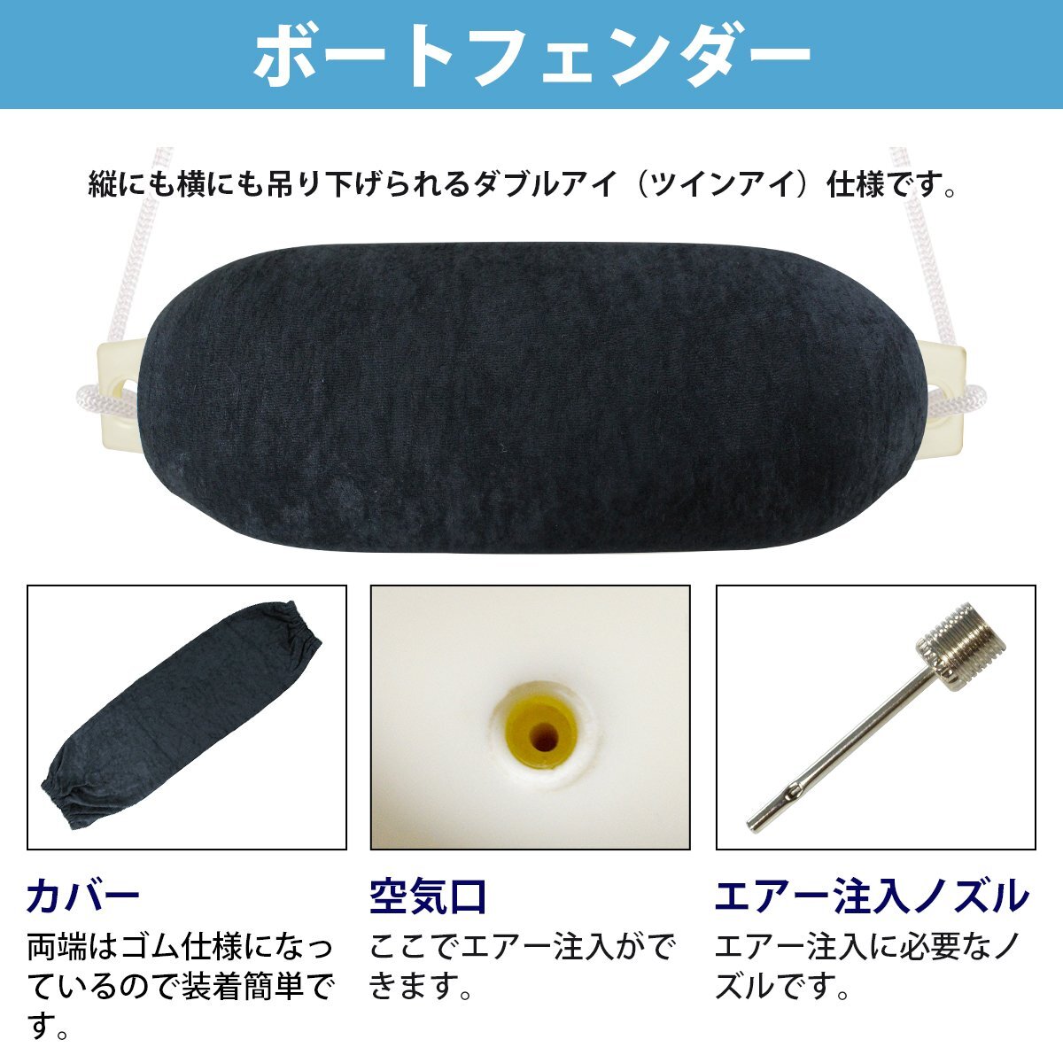『3種×2セット』ボートフェンダー 680×240mm&黒カバー&ロープ 白 2m 船 浮き ブイ フロート 係留ロープ