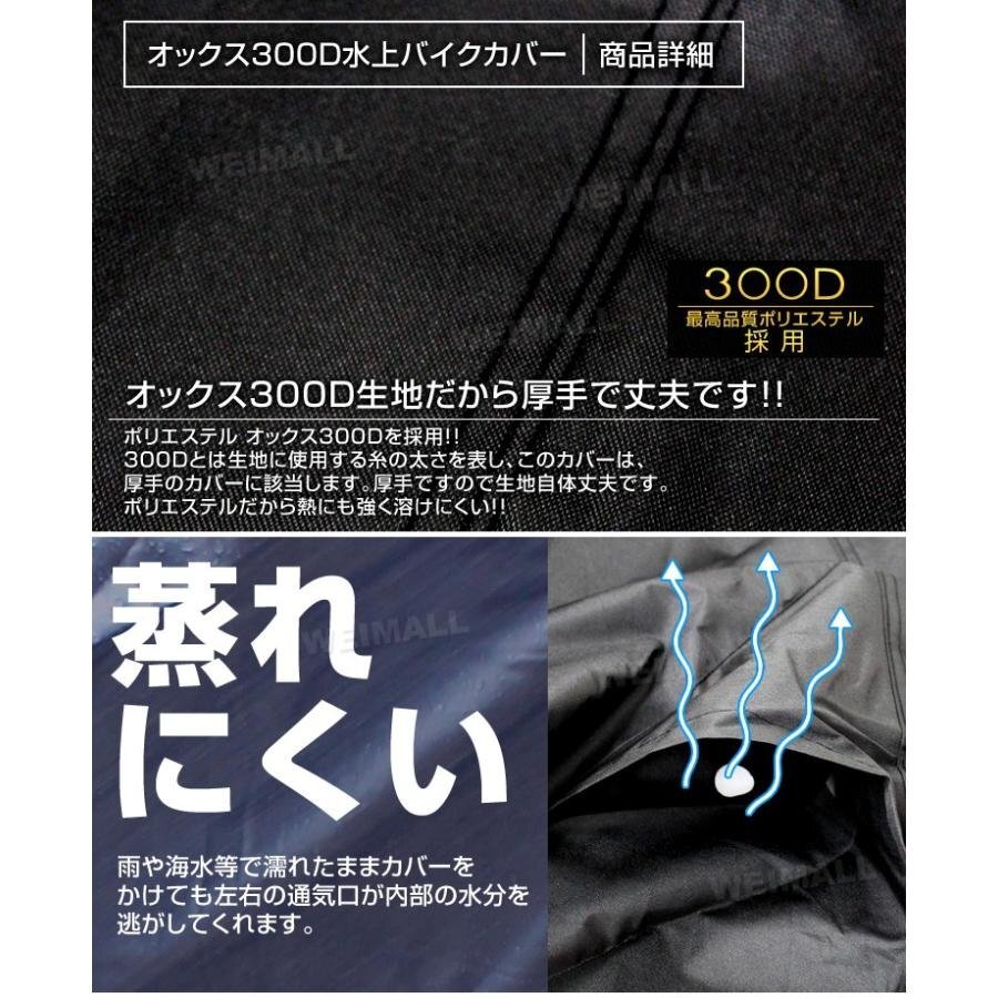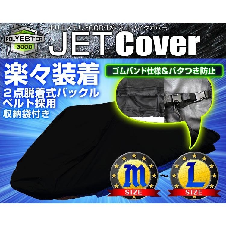 | ポリエステル布タフタ織仕様の水上バイク用カバーです。 ゴムバンド仕様&2点脱着式バックルベルト採用でバタつきません。 収納袋も付いています! 紫外線抑制効果のあるブラックカラーでUVカット! 本体ボディを紫外線から守ります! カバーをかける際、目印のタグで前後がわかるので間違えにくくなっています。 ●商品仕様 サイズ:L(2~3人乗り向けサイズ) 対応サイズ:全長/約250~360cm、横幅/約120cm、高さ/約115cm ●商品内容 カバー本体 収納袋 2点脱着式バックルベルト×2 周囲締め付け用ナイロンベルト×1 (水上バイクカバー 防水カバー 船体カバー 専用カバー ジェットスキー 水上バイク マリンジェット カバー おすすめ 送料無料)