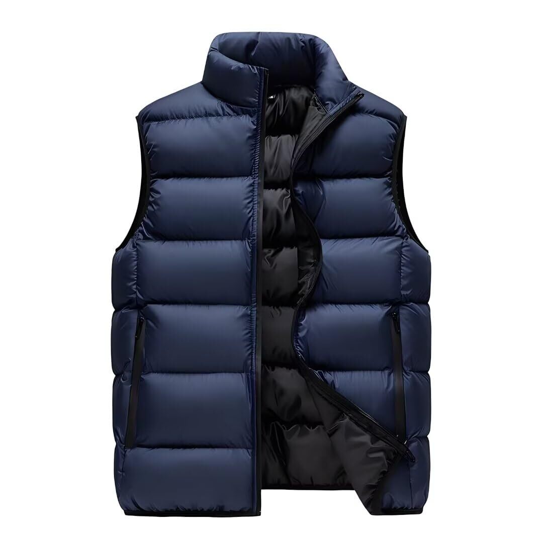 「高品質の中綿ベスト」何度も厳選した上質なポリエステル素材を使用し、暖かい着心地を実現した中綿入りメンズダウンベストです。耐久性にも優れ、柔らかくて軽い特徴を持つのでストレスを感じなく楽に着ることもできます。寒い冬にピッタリオススメの中綿ベストです。