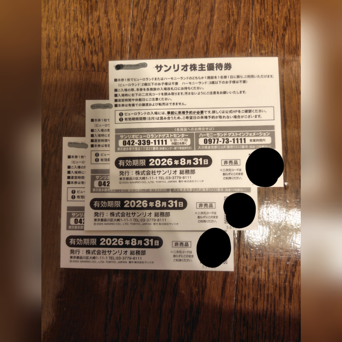 サンリオピューロランド(ハーモニーランド)のフリーパス3枚セットです。