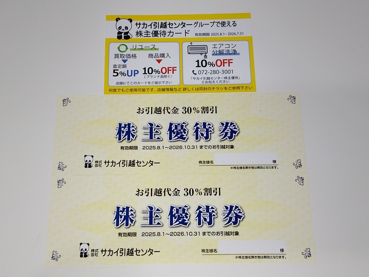 サカイ引越センター 株主優待券 30%割引券×2枚 & 株主優待カード 引越しの堺 リユースのサカイ エアコン分解洗浄割引券 10%OFF
