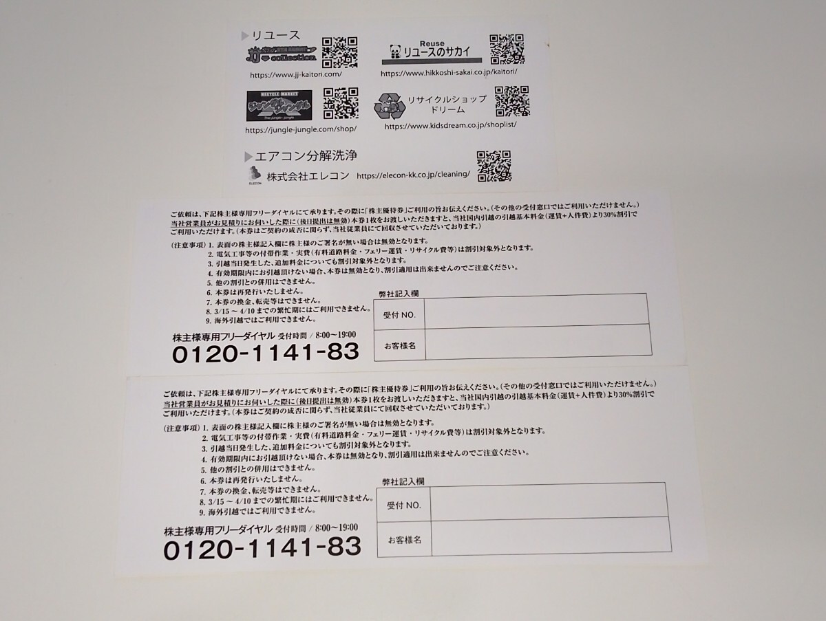 ●引越代金30%割引株主優待券 2枚