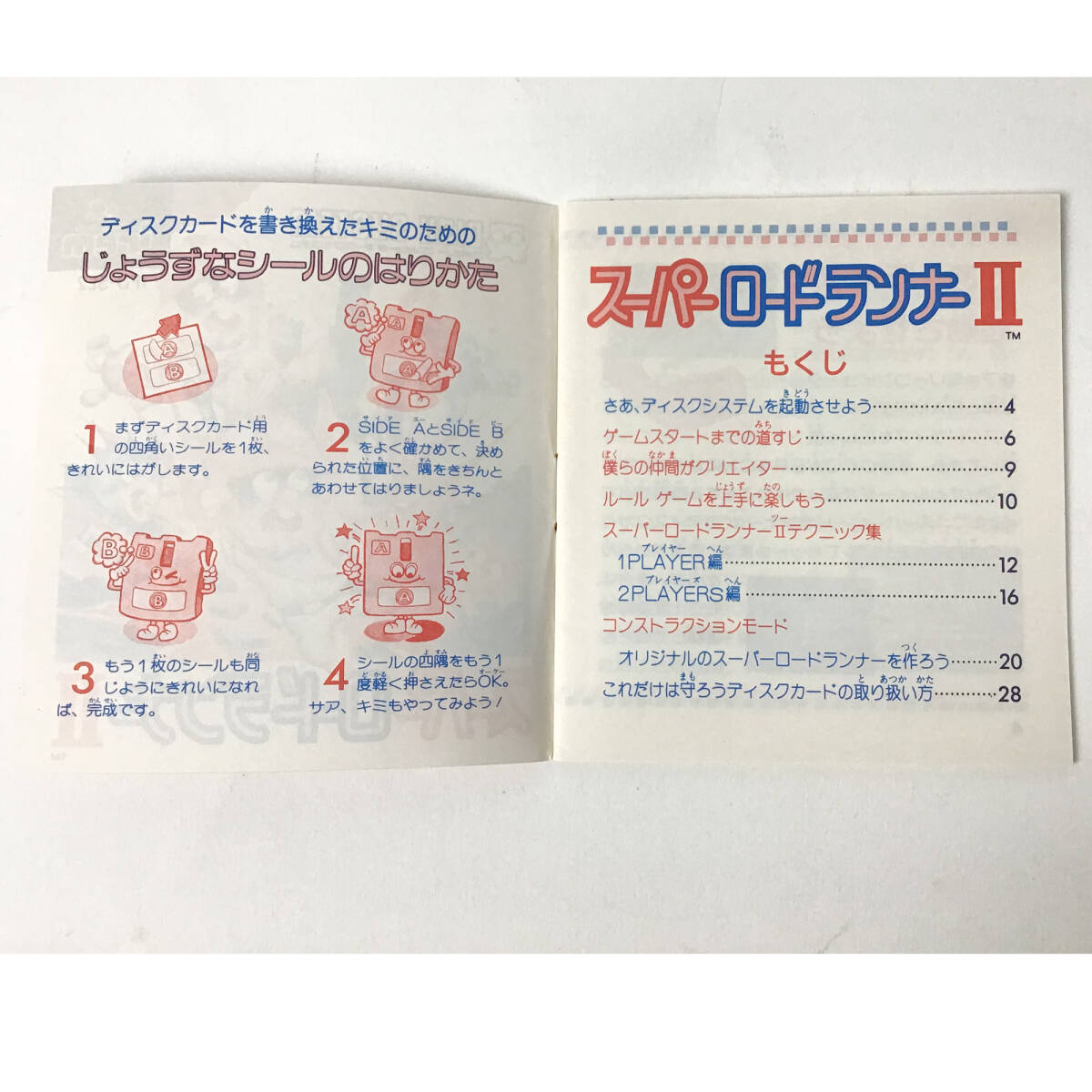 長年倉庫にて大切に保管していた、ファミコン ディスクシステム用『スーパーロードランナーII』の取扱説明書およびA/B面ラベルシール(未使用台紙付き)です。