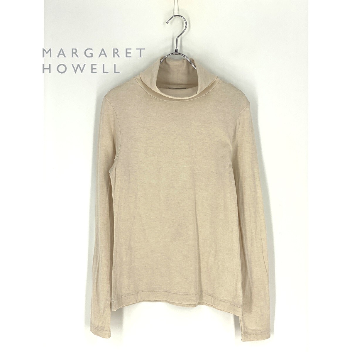 B0989/極美品 MARGARET HOWELL マーガレットハウエル コットン キャメル タートルネック 長袖 ニット セーター ST M程 ベージュ レディース