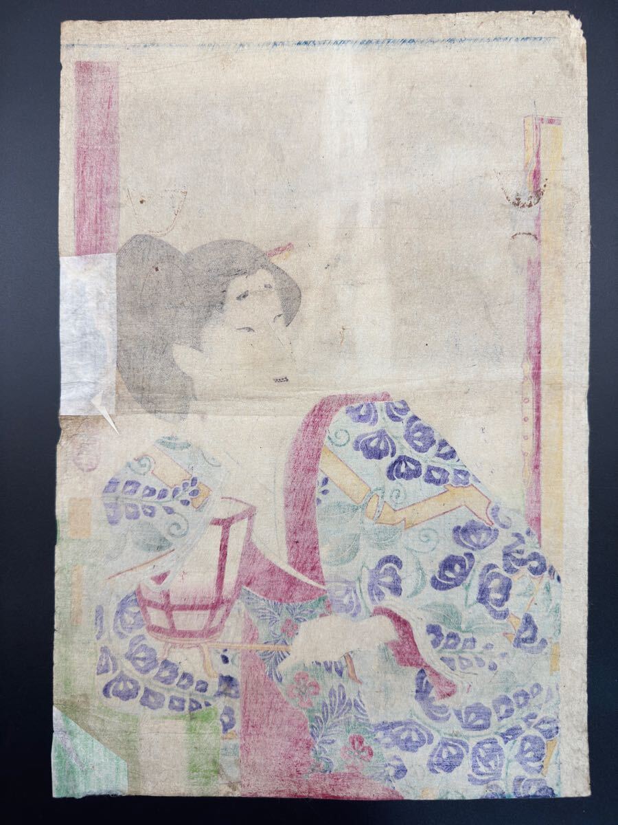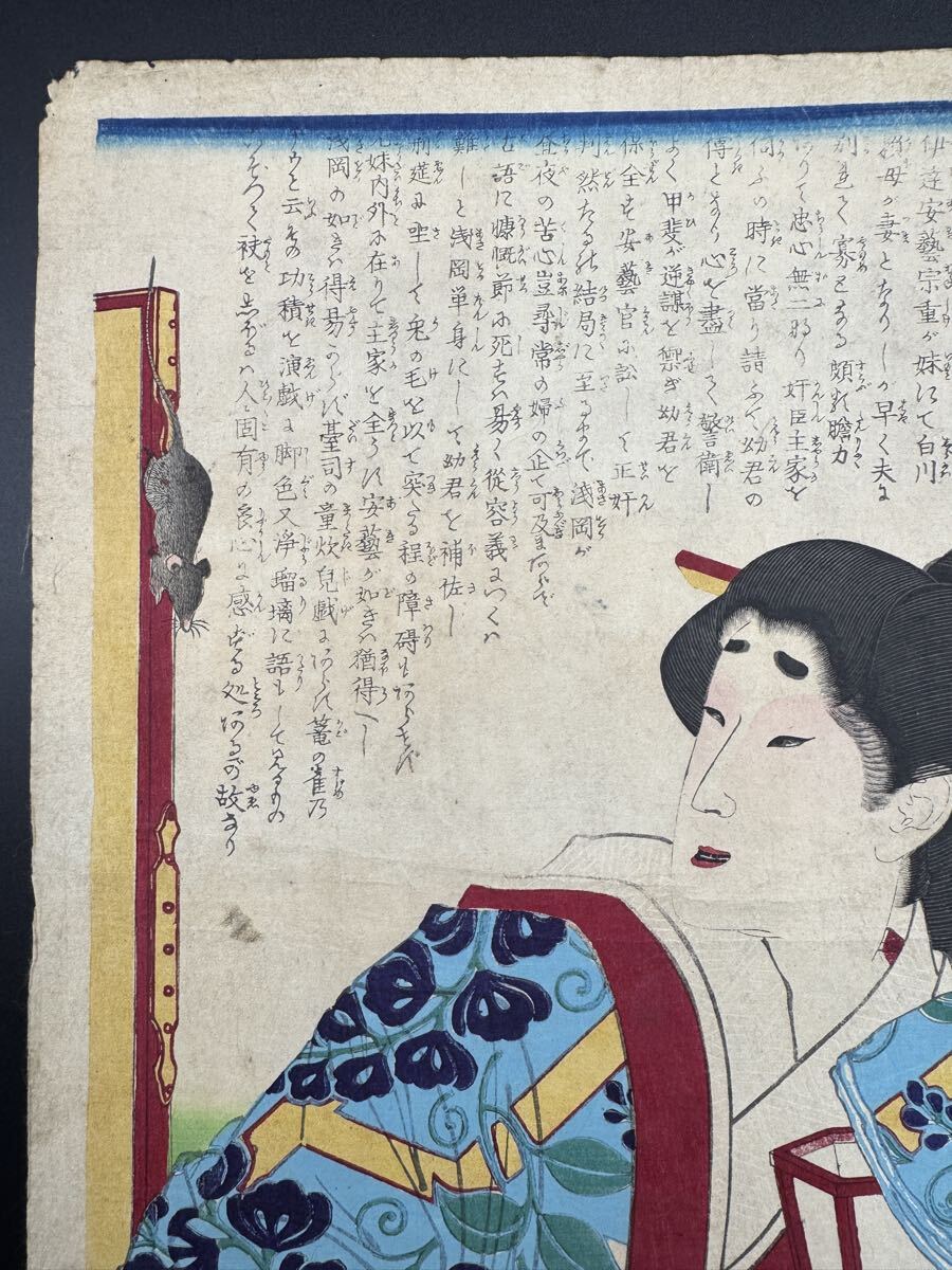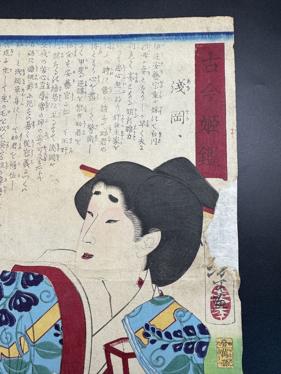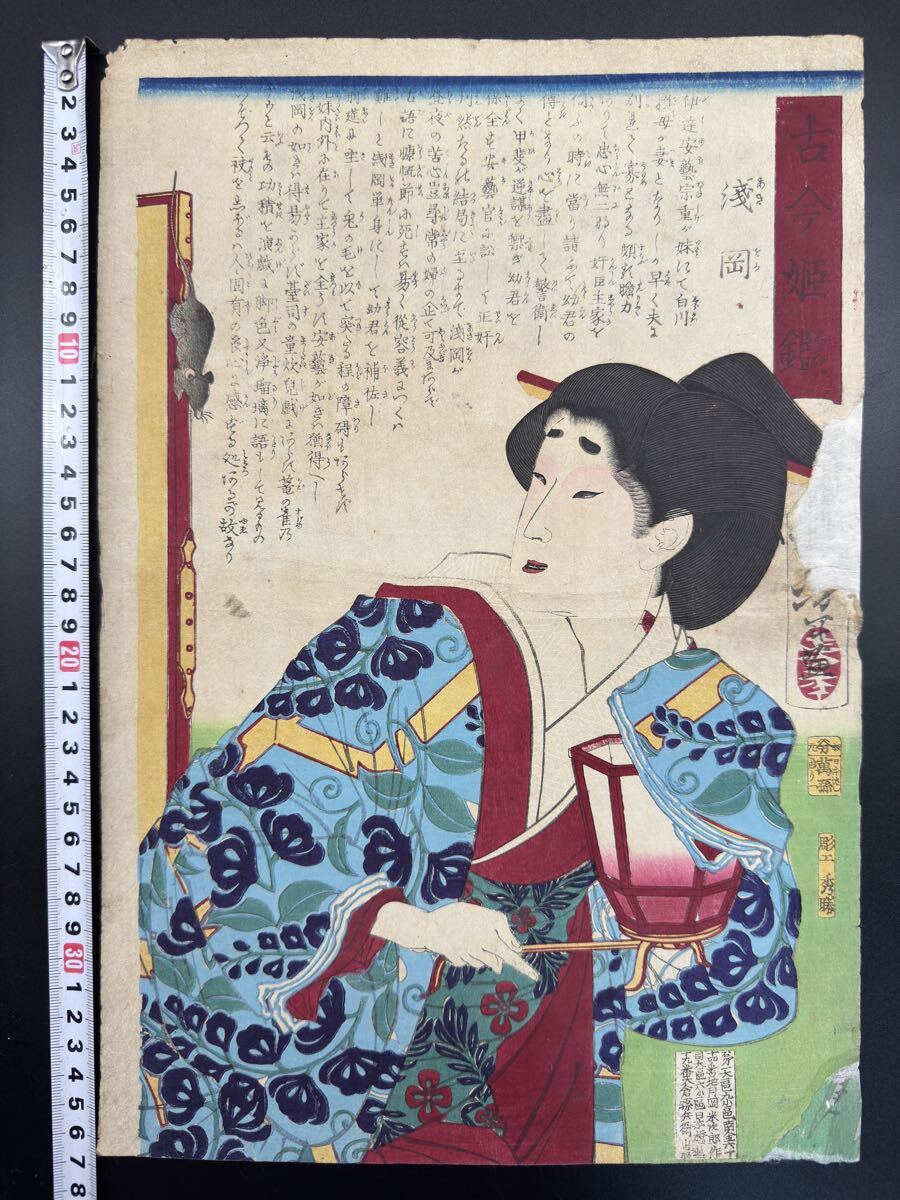 明治期/真作 月岡芳年「古今姫鑑 浅岡」本物浮世絵木版画 美人画 錦絵 大判 裏打ち