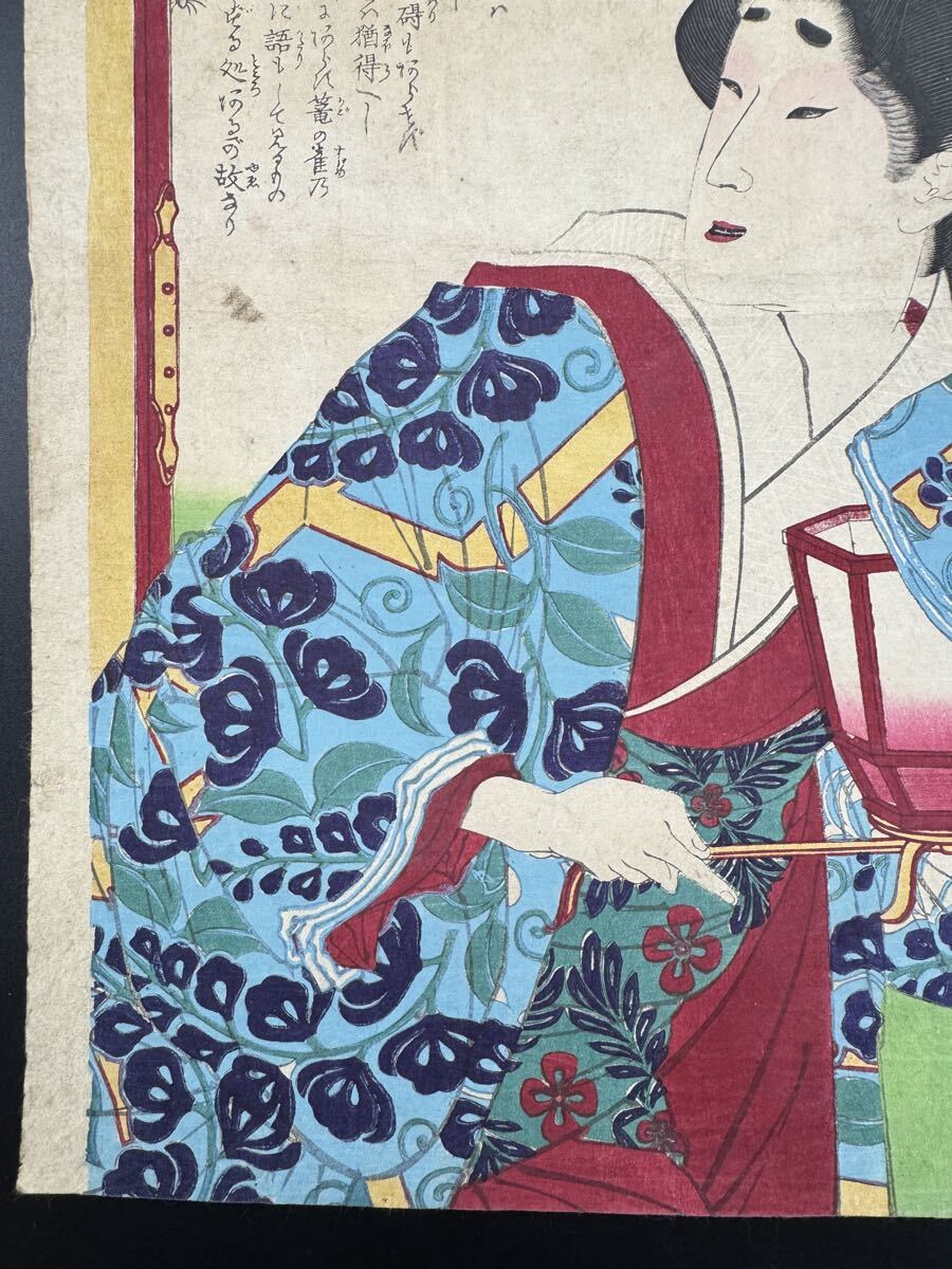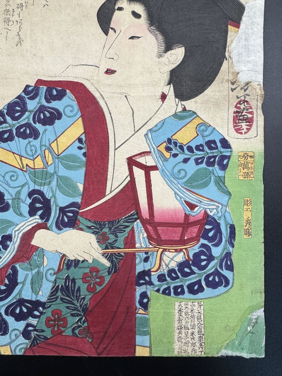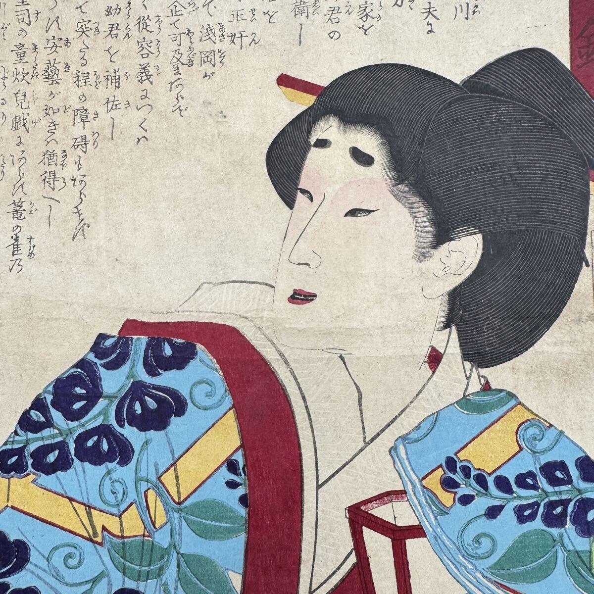 明治期/真作 月岡芳年「古今姫鑑 浅岡」本物浮世絵木版画 美人画 錦絵 大判 裏打ち