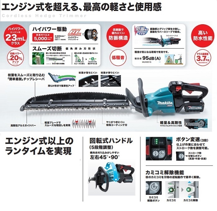 マキタ製の40Vmax充電式ヘッジトリマのMUH003GRDXです。